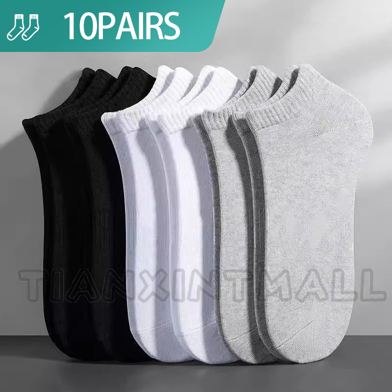 10Pairs Medyas Pack Korean Style Women’s Summer Cotton Socks - Black and White Medium-Length