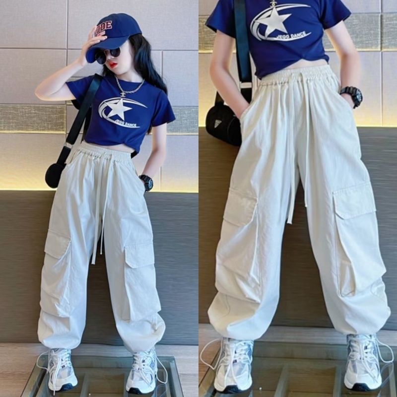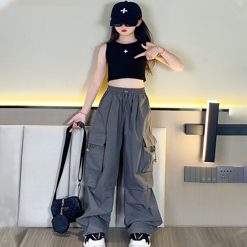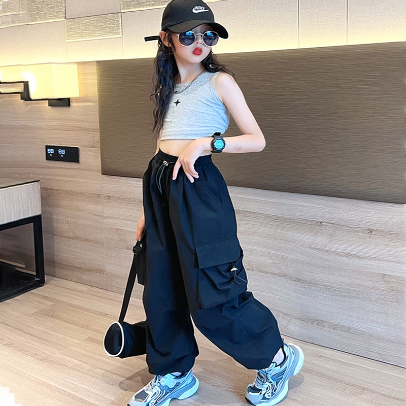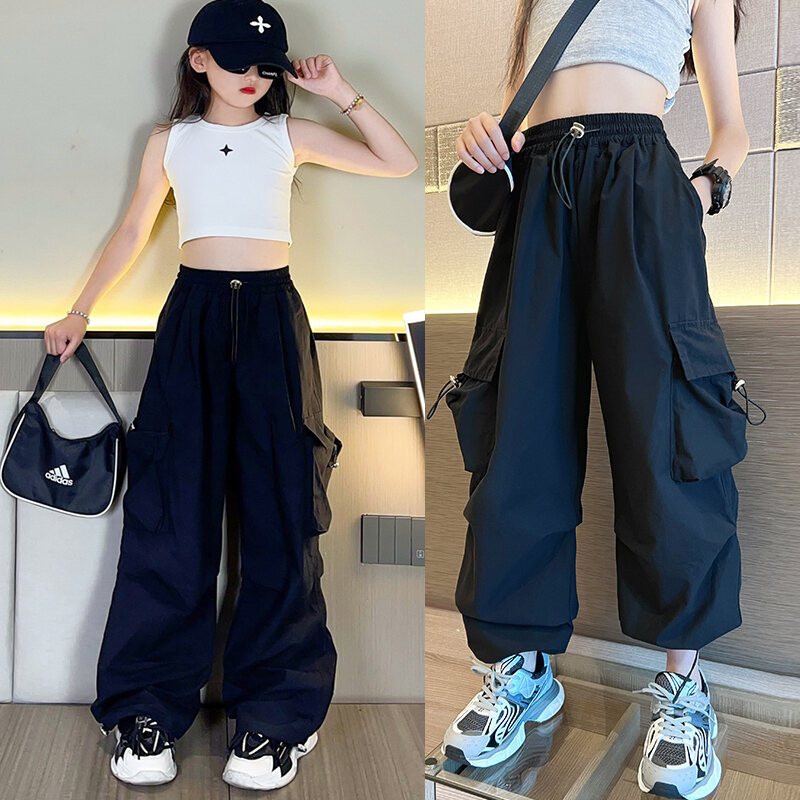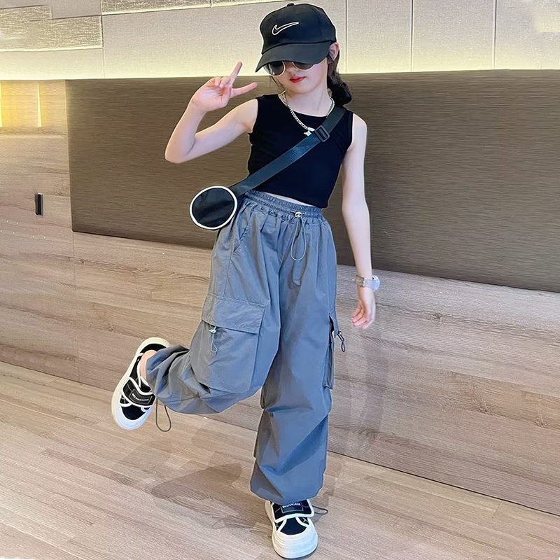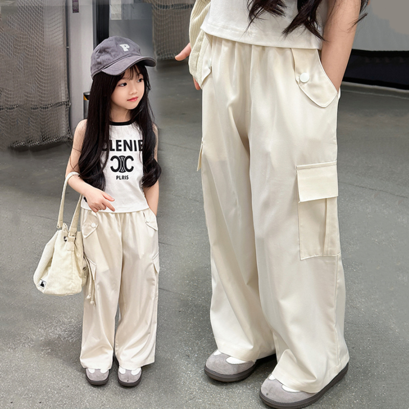 Cargo Pants For Kids Girls 4Pockets American Vintage Tooling Style Casual Summer Loose Trousers 5-16