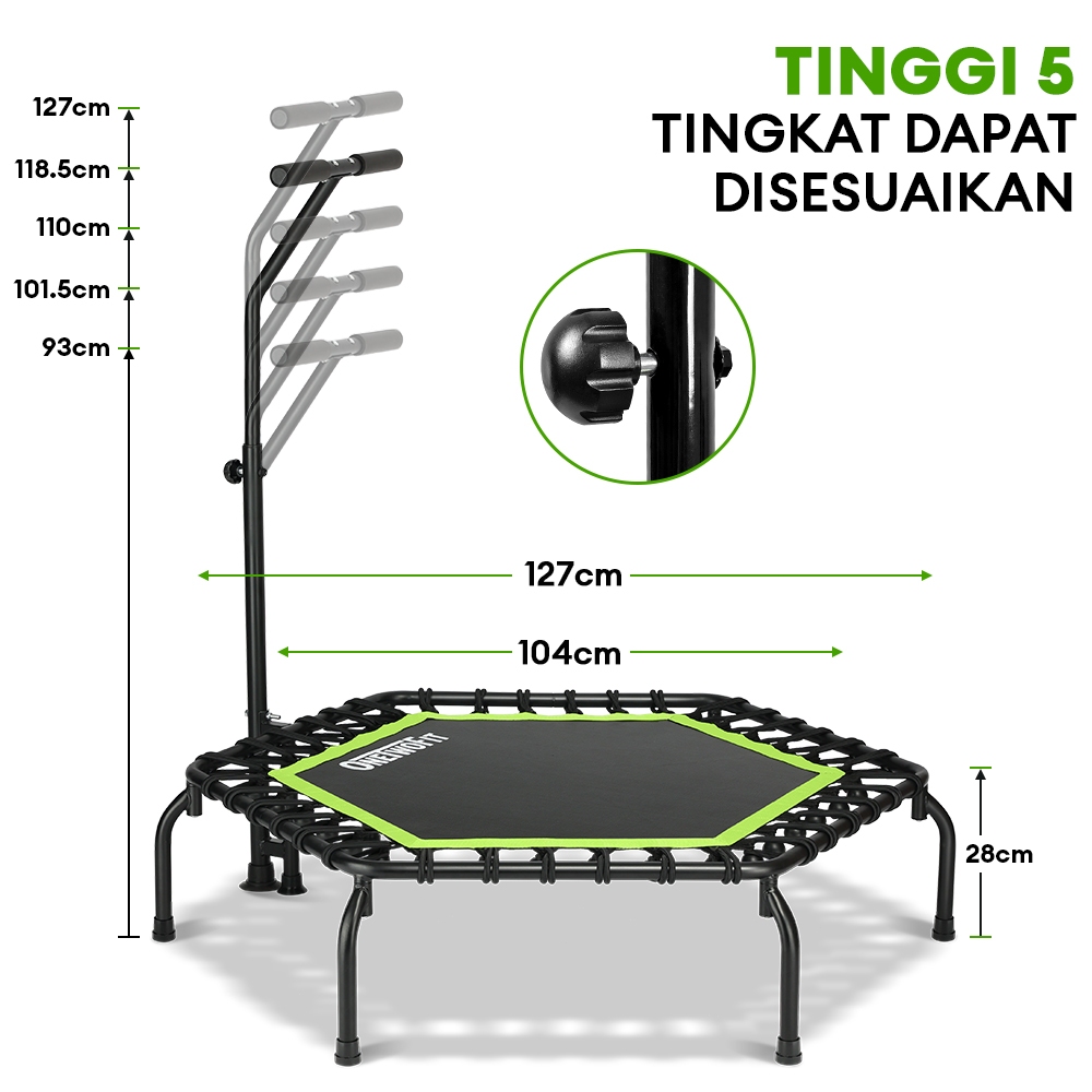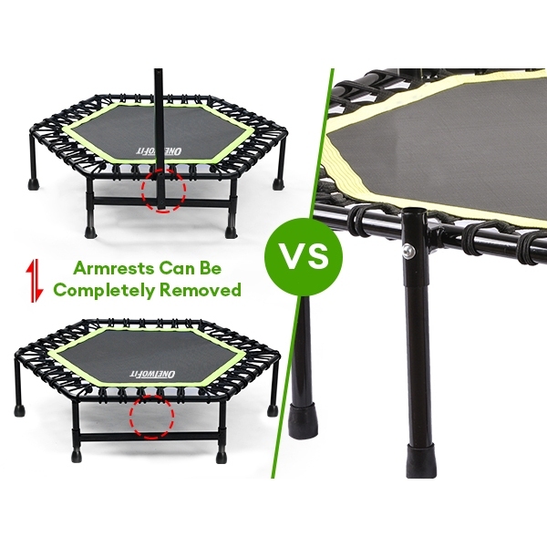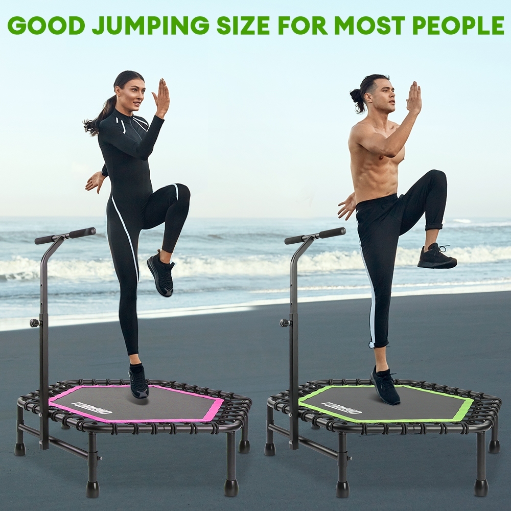 OneTwoFit 45-50'' Silent Mini Trampoline with Adjustable Handle Bar Trampoline For Kids And Adults Fitness Exercise Jumping Workout