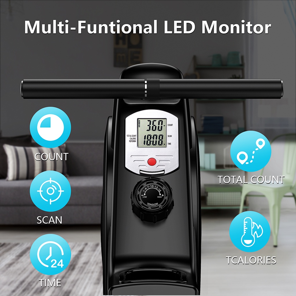 OneTwoFit Rowing Machine 16-level Adjustable Resistance Foldable Rower with LED Monitor Fitness Equipment OT267