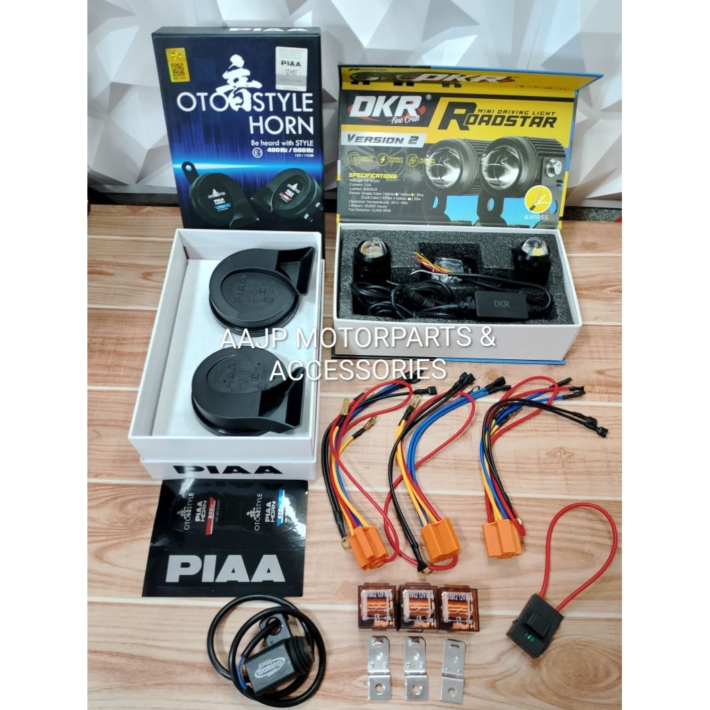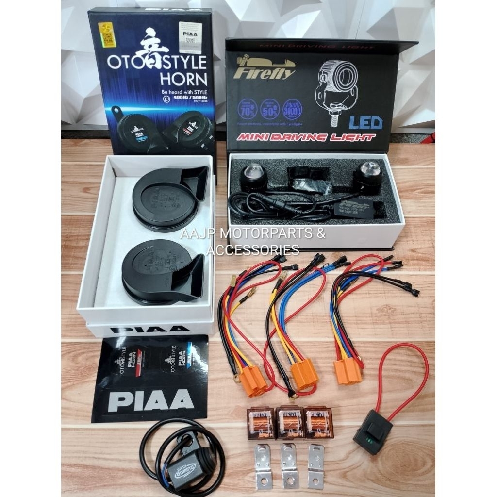 AAJP PACKAGE V1 FIREFLY DKR MINI DRIVING LIGHT PIAA LOUD HORN COMBO With RAPID/INTERRUPTER RELAY SET