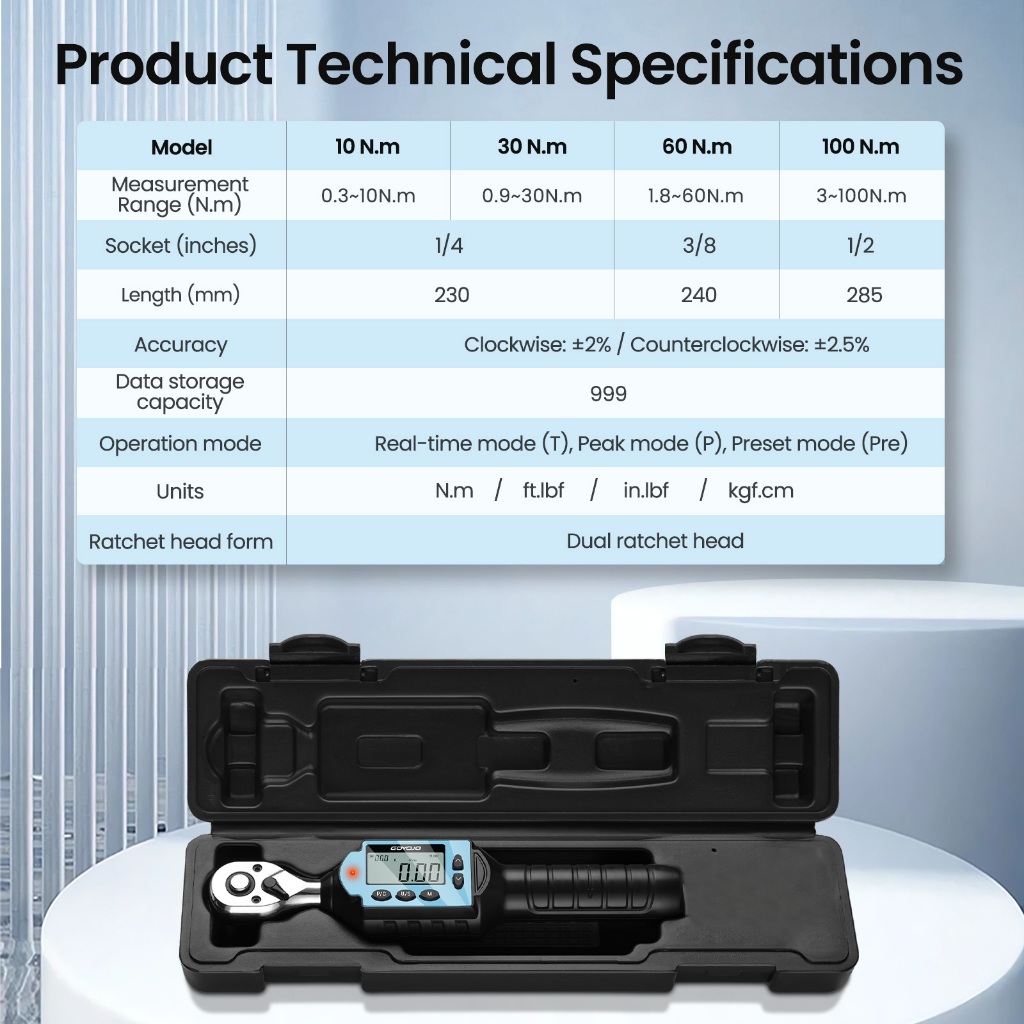 1/2 3/8 1/4 Digital Preset Torque Wrench Bidirectional Ratchet Head Professional Adjustable Bicycle Repair Hand Tools