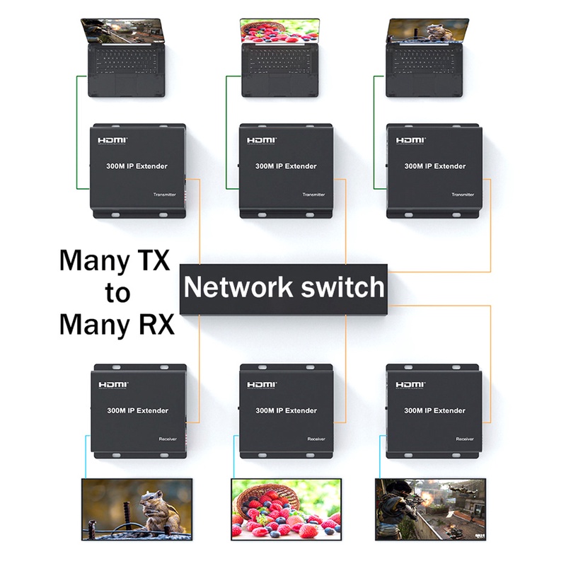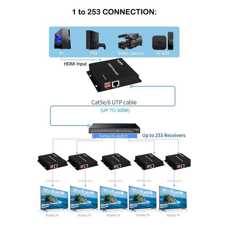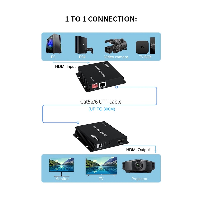 300M HDMI Extender Over IP RJ45 Cat6 Cable 1080P HDMI To Ethernet Extender Video Transmitter and Receiver Support One To Many , Network Matrix Switch Splitter Video Converter