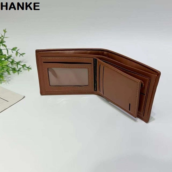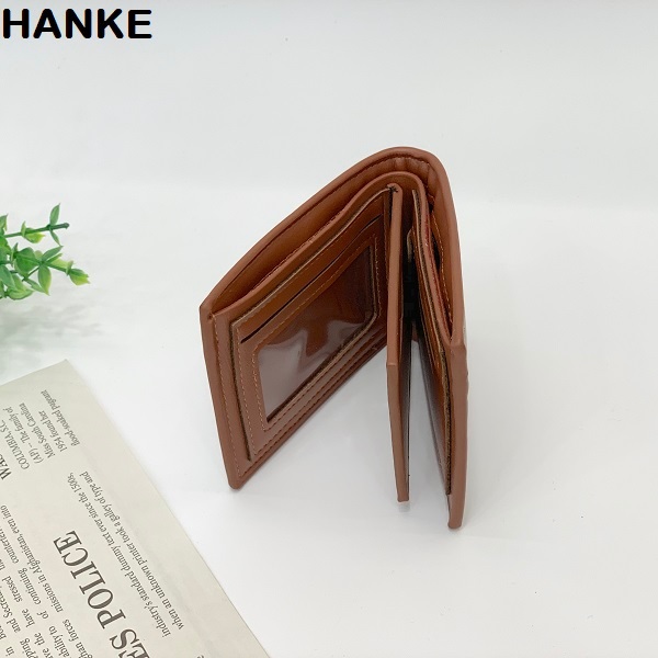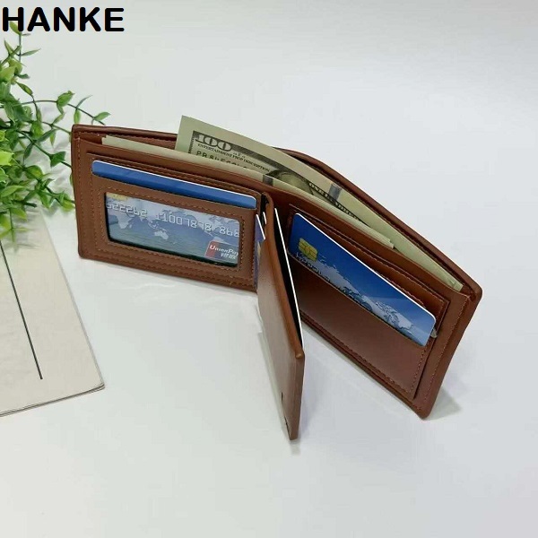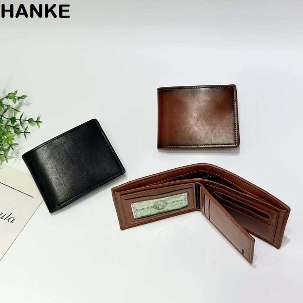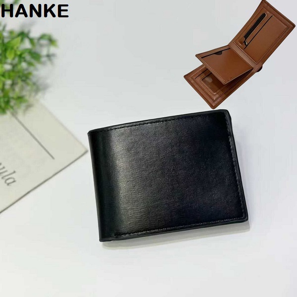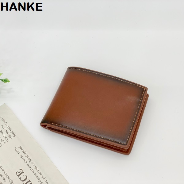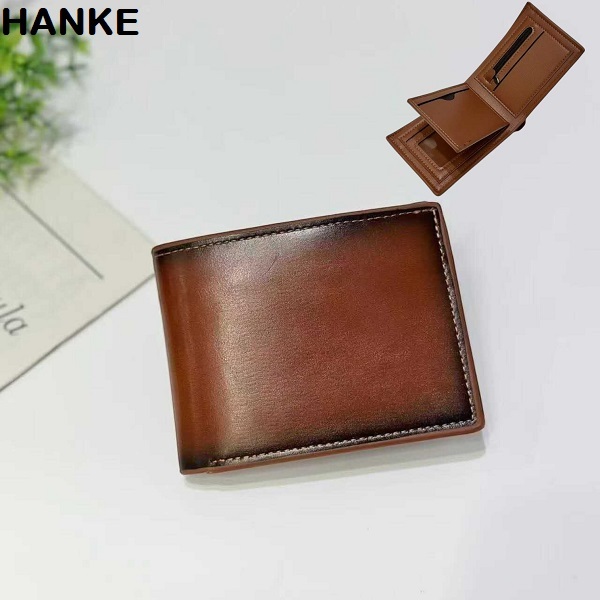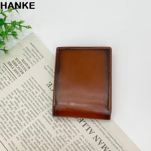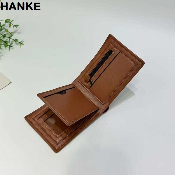 HANKE Leather Men's Wallet Short Bifold with Zipper for Coins and Card Slot