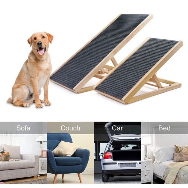 4-Height Adjustable Pet Ramp Stair Wood for Large Dogs Cats Load 80 KG