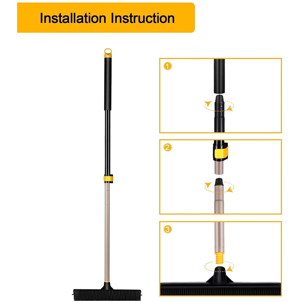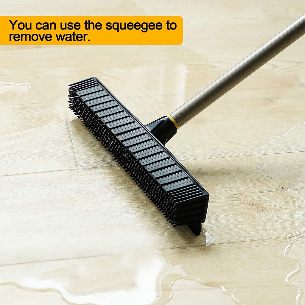 Broom Pet Hair Fur Removal Broom Soft Bristle Push Broom with Squeegee Carpet Sweeper Floor Squeegee