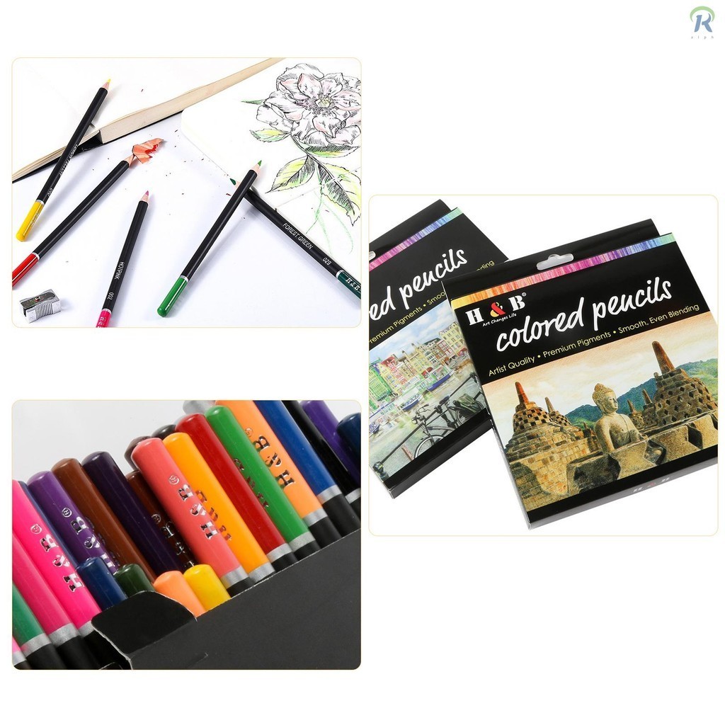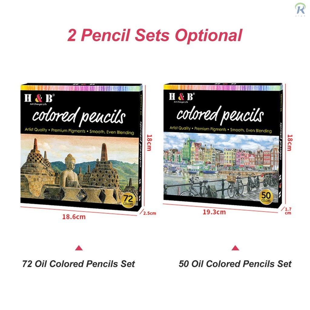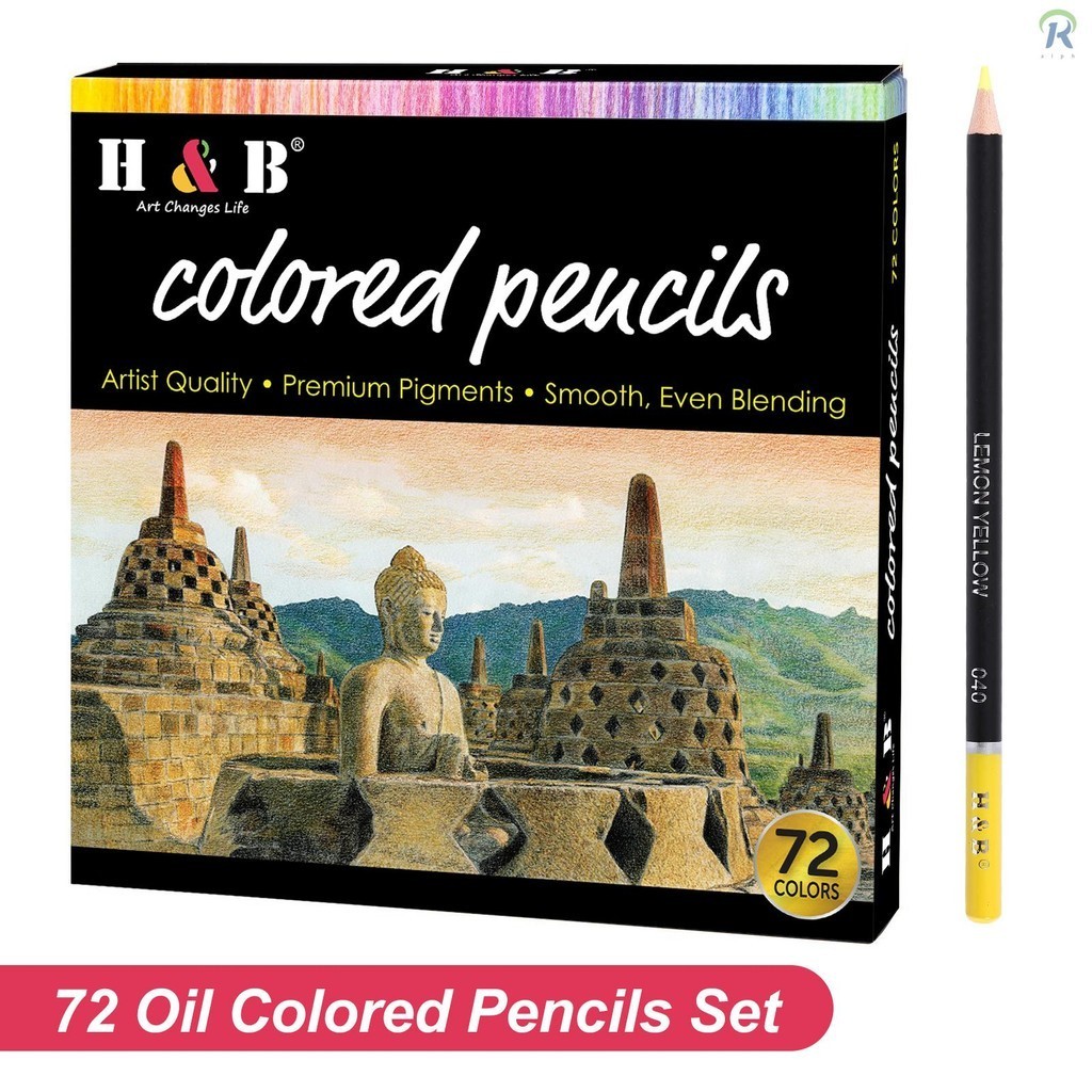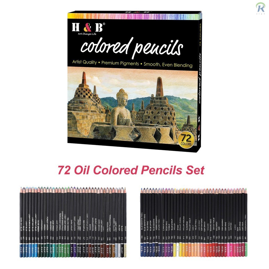 H&B Oil Colored Pencils Set 72 Color Pre-Sharpened Color Sketch Pencils Art Supplies for Students Adults Artists Drawing Sketching Coloring Books Decoration DIY Projects Presen WDX