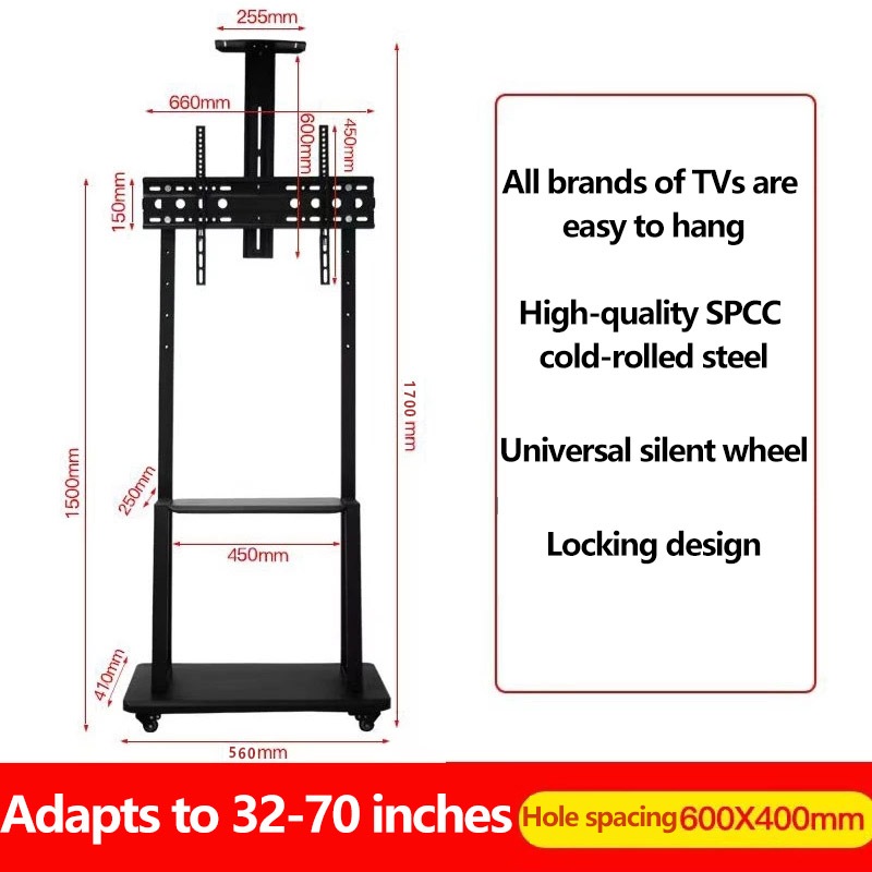 32-70 Inch TV Stand Floor Stand Movable Universal TV Stand Base with Tray Can Bear 250KG