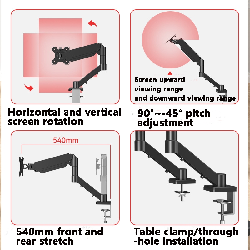 Single computer monitor stand Mount Arm Gas Spring Adjustable Monitor Bracket For 17"-35"