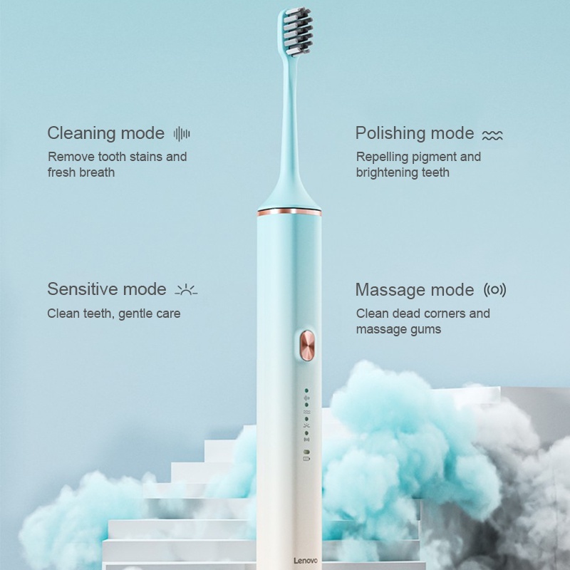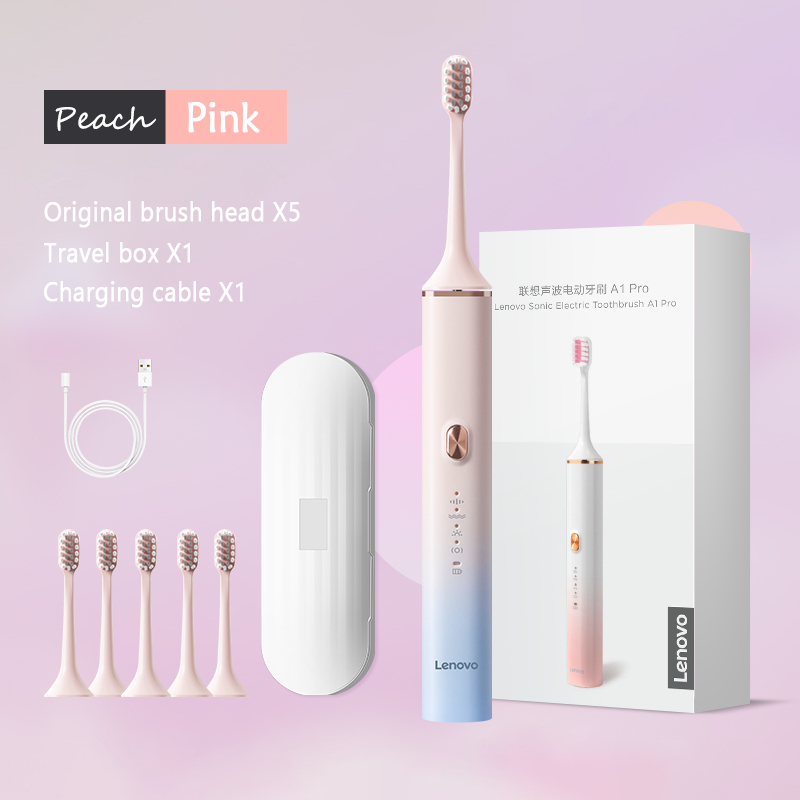 Lenovo A1 Pro Ultra-Whitening Electric Toothbrush - 5 Brush Heads & Travel Case 40,000 VPM Motor & Wireless Charging 4 Modes Smart Timer