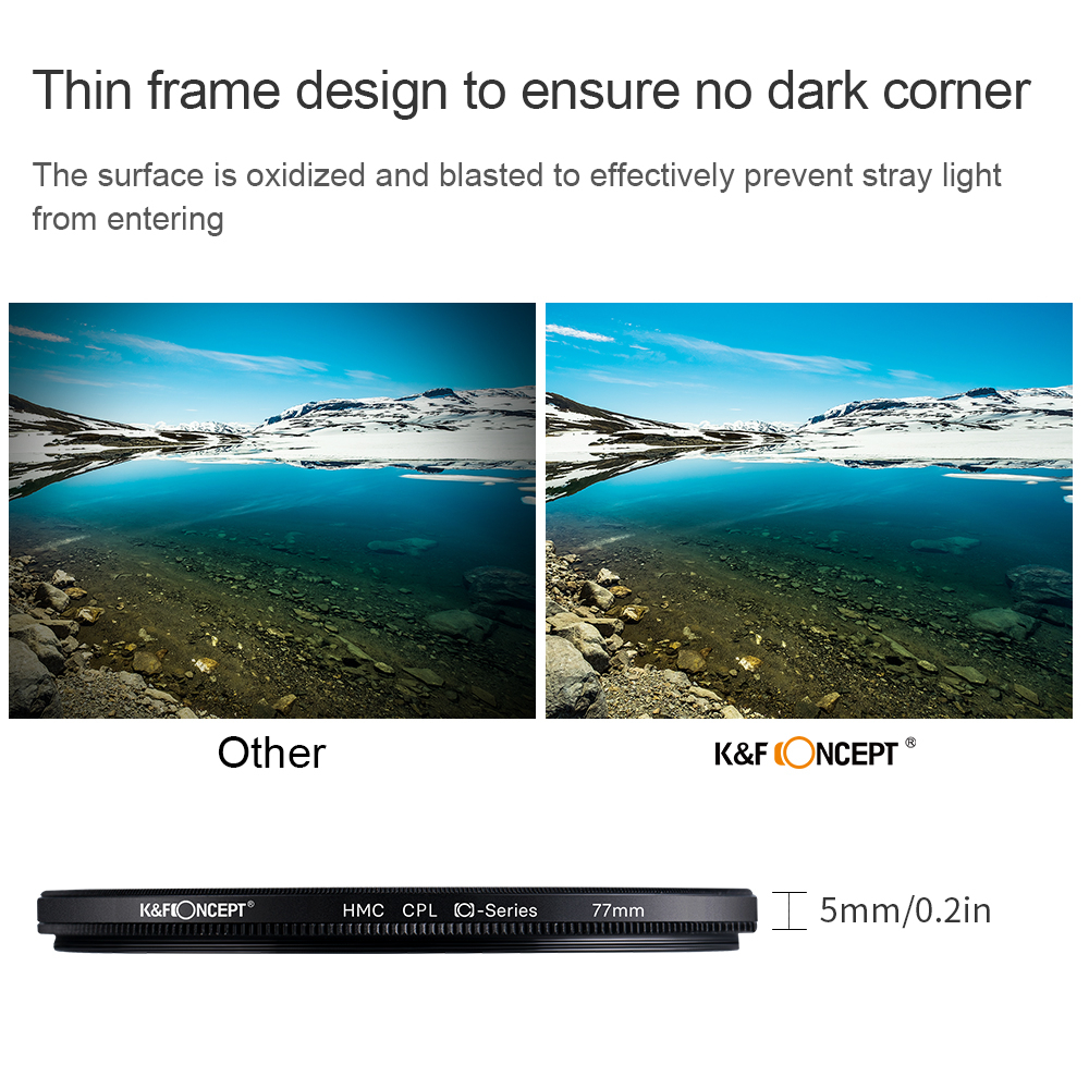 K&F Concept Circular Polarizer CPL Filter 37/40.5/43/46/49/52/55/58/62/67/72/77/82mm Ultra-thin/Reducing glare/Better contrast, for Camera Lens