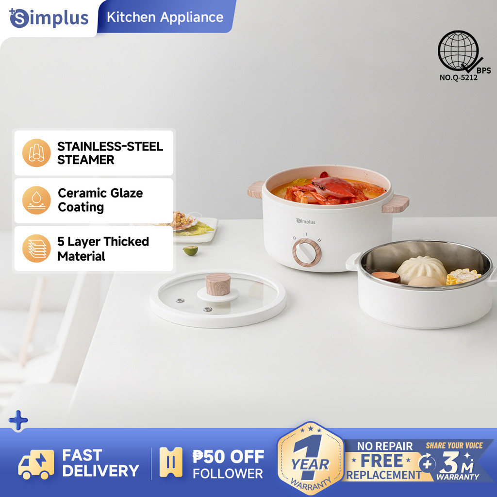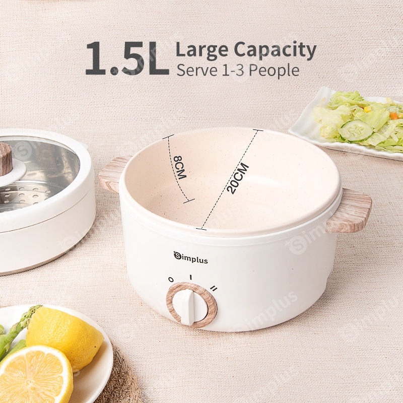 Simplus 2 In 1 Electric Cooker 1.5L/3L Stainless Steel/Plastic Steamer Multi-Function Non Stick Pot