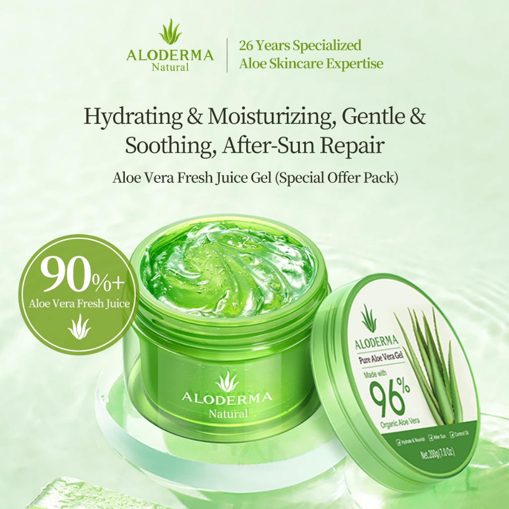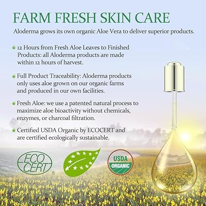 ALODERMA Organic Pure Aloe Vera Gel na gawa sa 96% USDA Organic Certified Aloe Vera sa loob ng 12 Oras pagkatapos ng Pag-aani. Lahat ng Uri ng Balat – Walang Malagkit na Nalalabi – Eco-Friendly (200g, 7.0 oz)