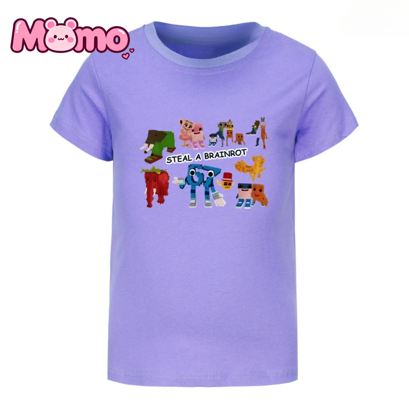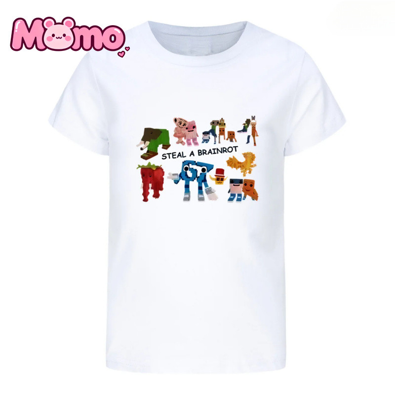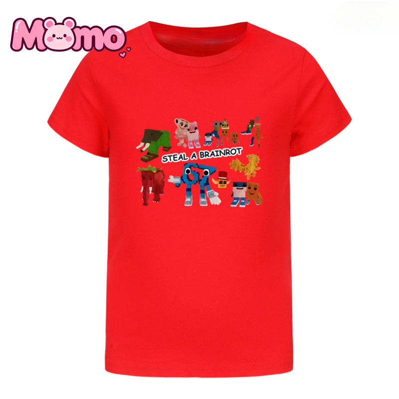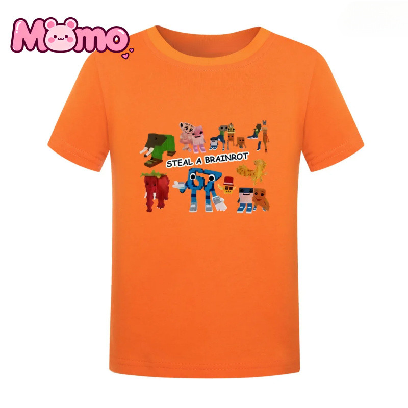 2026 New Steal a Brainrot Game Pattern Printed Boys and Girls Same Style Versatile Short Sleeve Round Neck Children's Top