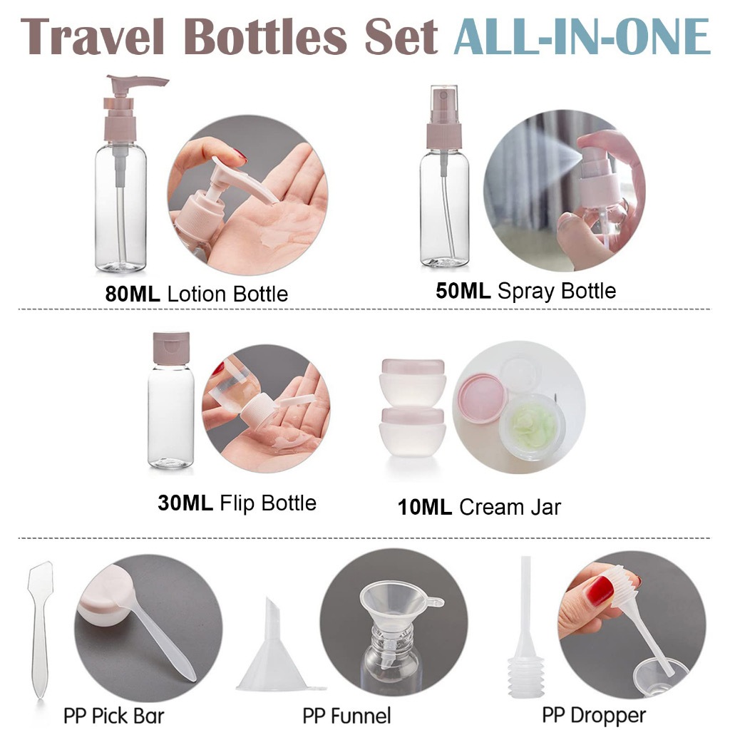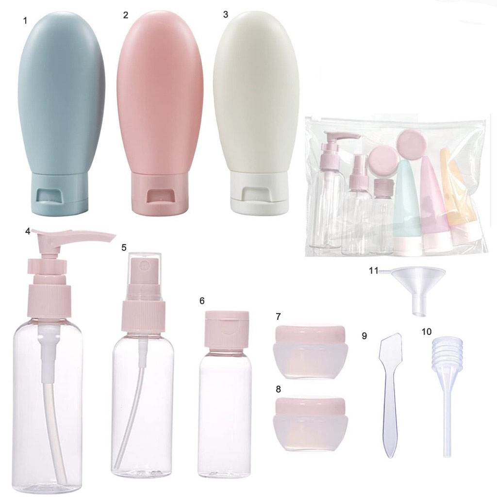 11PCS Plastic Travel Bottle Set - Leakproof Cosmetic Containers For Lotion, Shampoo & Spray
