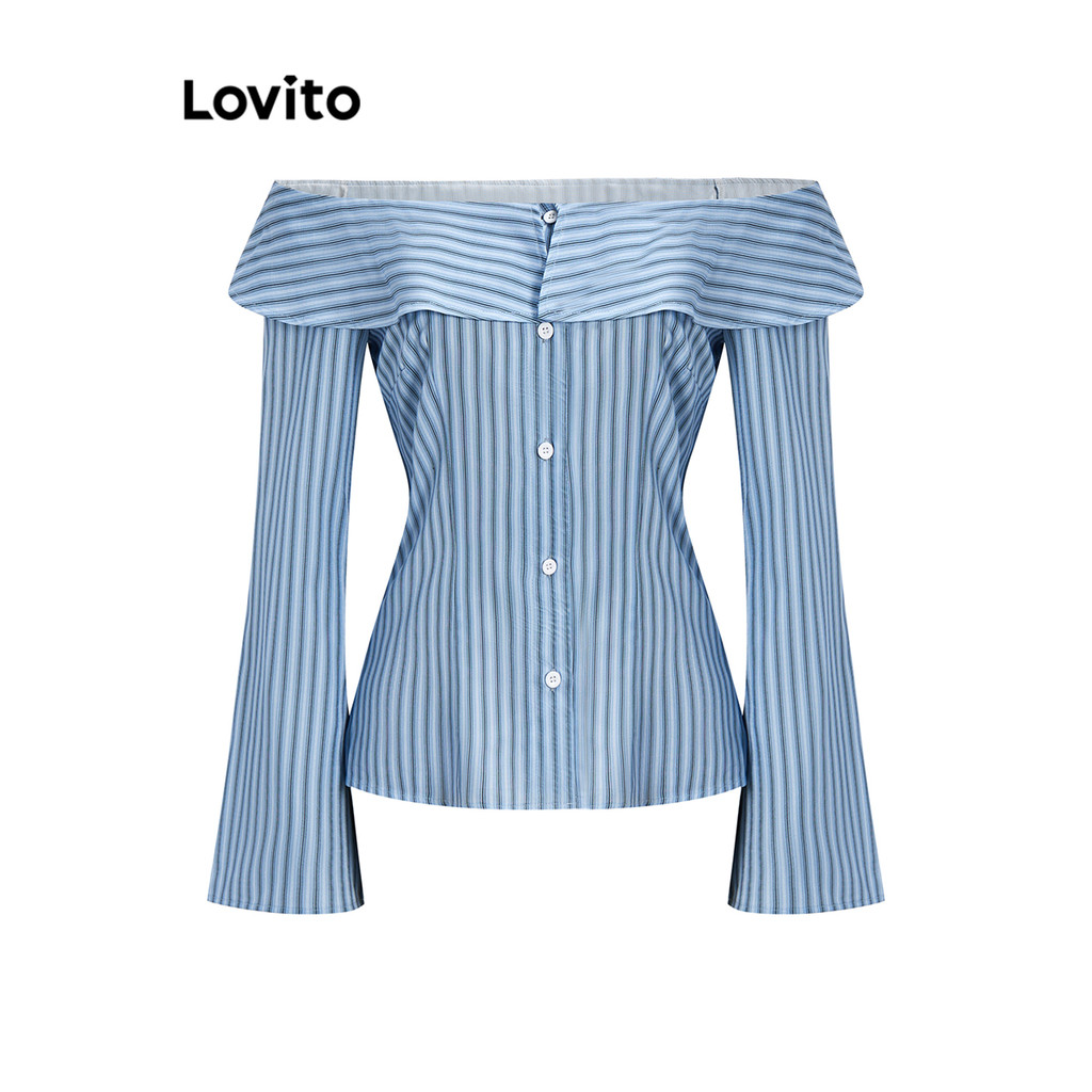 Lovito Women Casual Blouse Striped Pattern Button Ruffle Blouse L61AD024 (Multi-color)