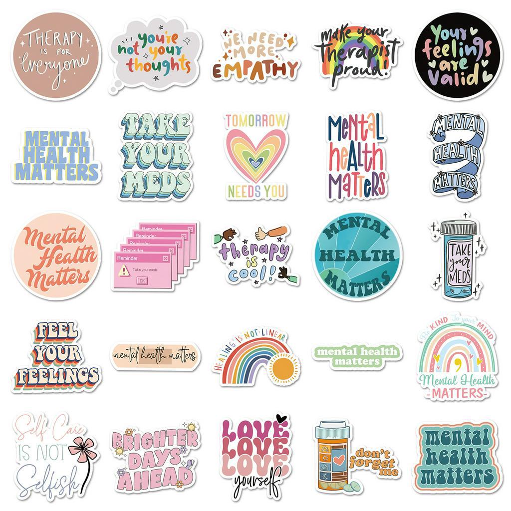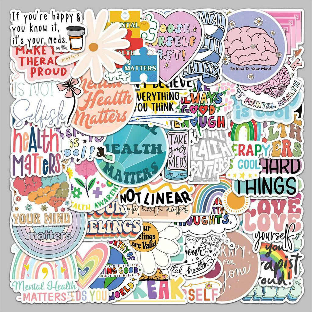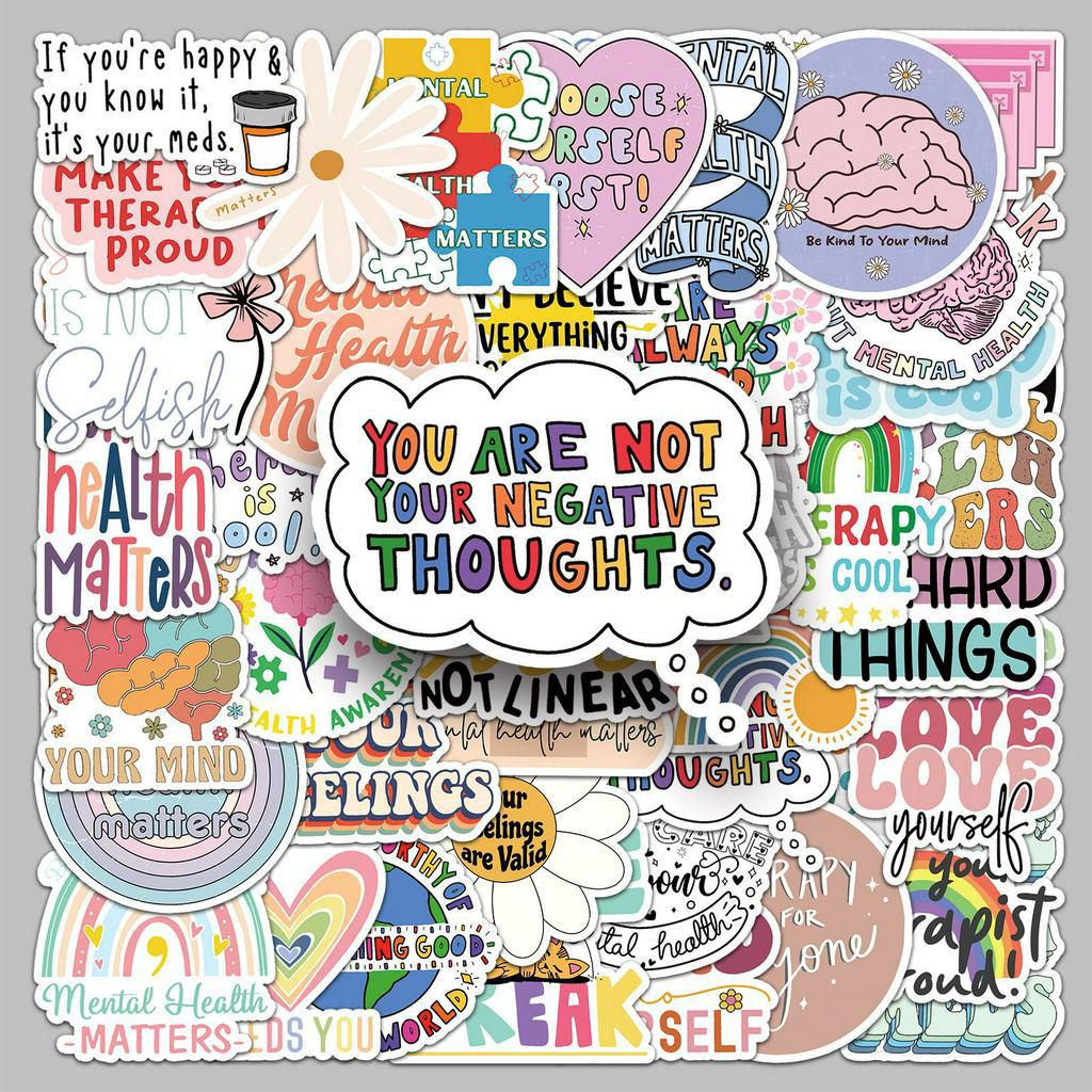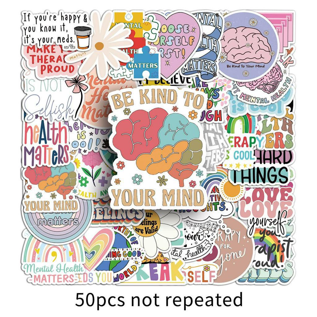 50PCS Mental Health Motivation Stickers - Waterproof Vinyl Decals for Laptop, Phone Case & Journal (Inspirational English Quotes)