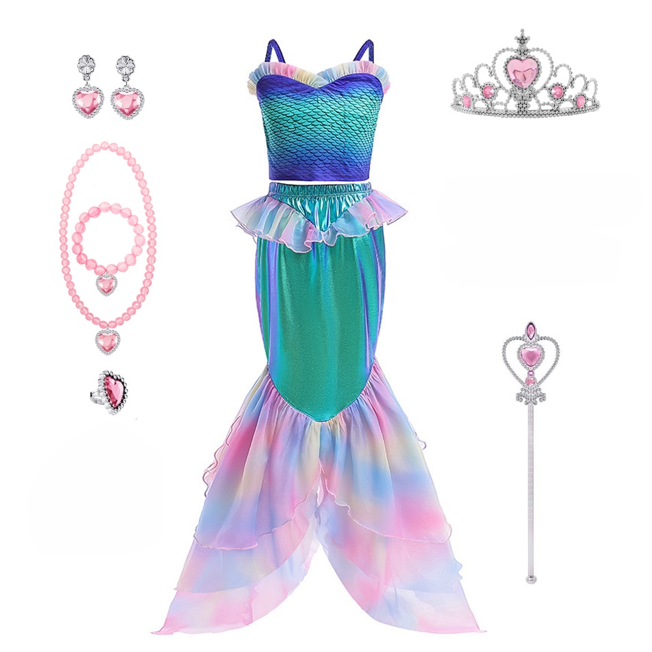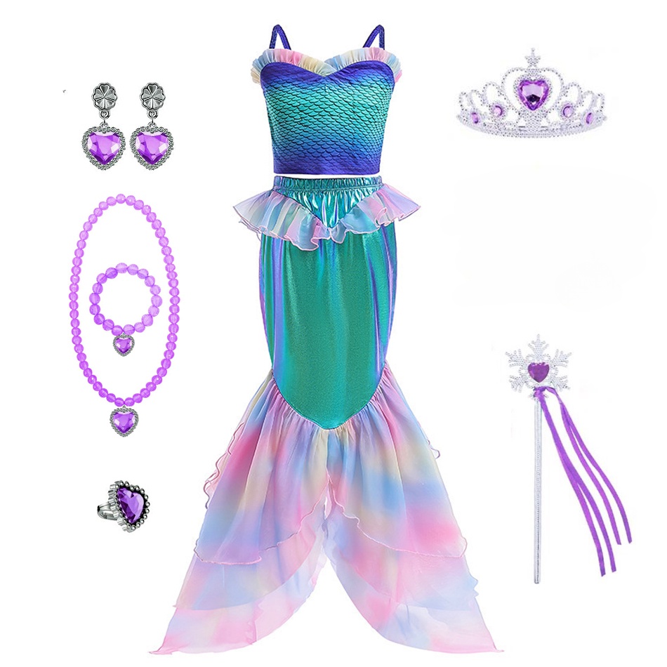 2023 Mermaid Dress Girls Kids Under the Sea Dress Up Princess Dress Cosplay Costume