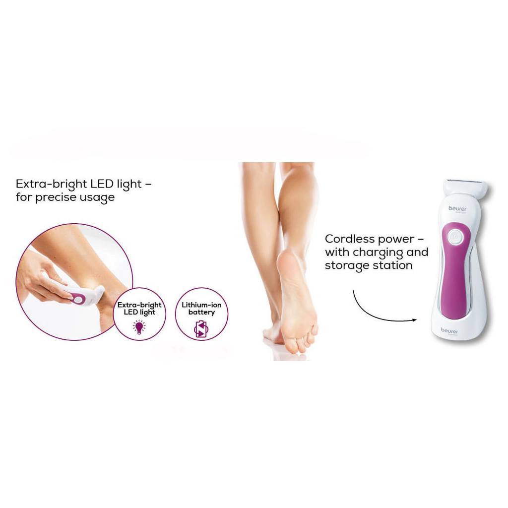 Beurer HL 36 Shaver - Lady shaver with exfoliating, glide & 2 trimming attachments for wet & dry