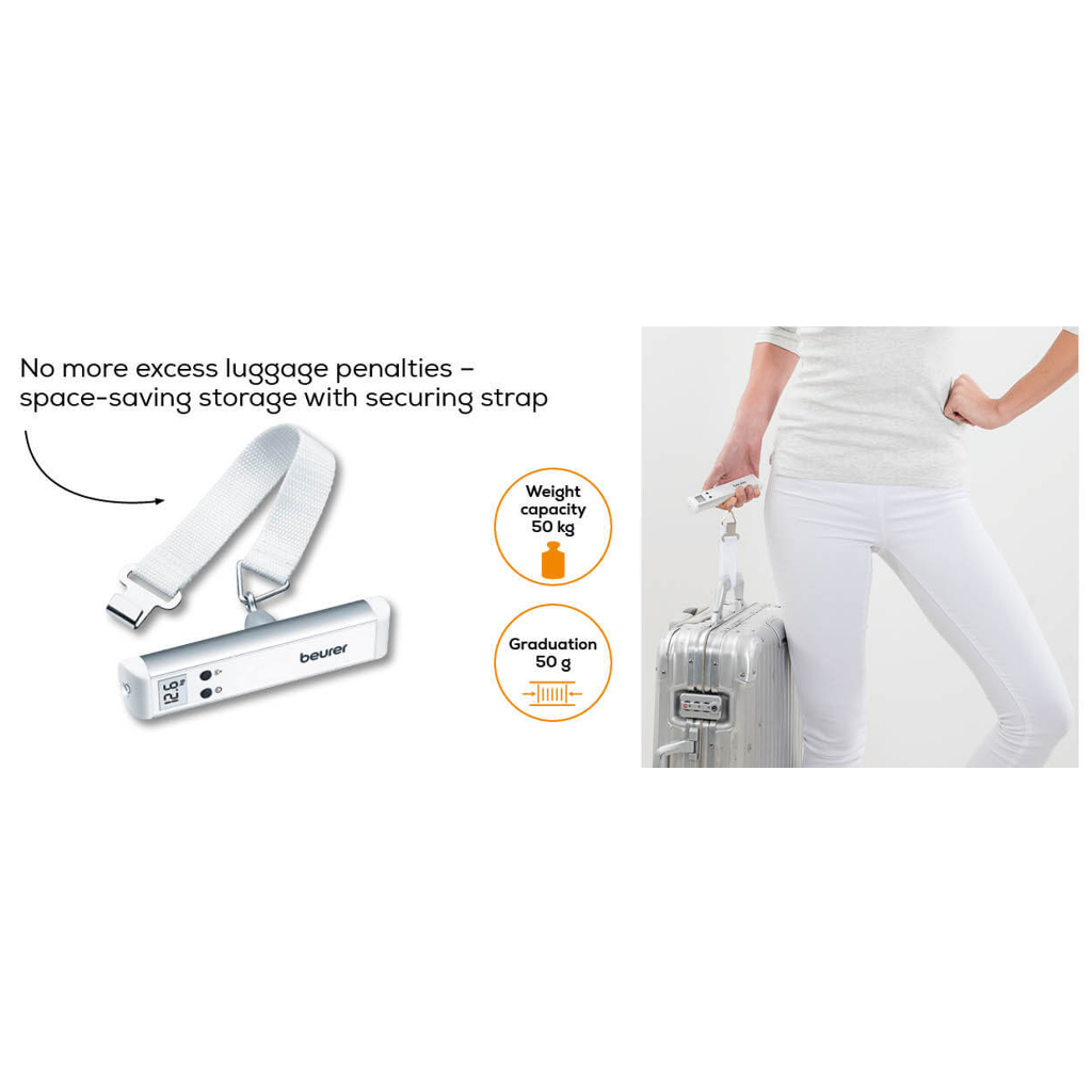 Beurer LS 10 Luggage Scale - Luggage scale with hold function & practical torch – up to 50 kg