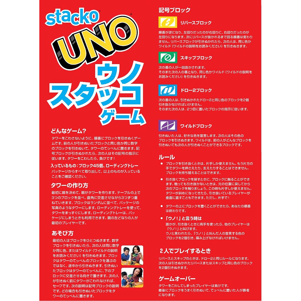 Mattel Game UNO Stacko Balance Game, for 2 to 10 players, Ages 7+, 43535, Japan Toy