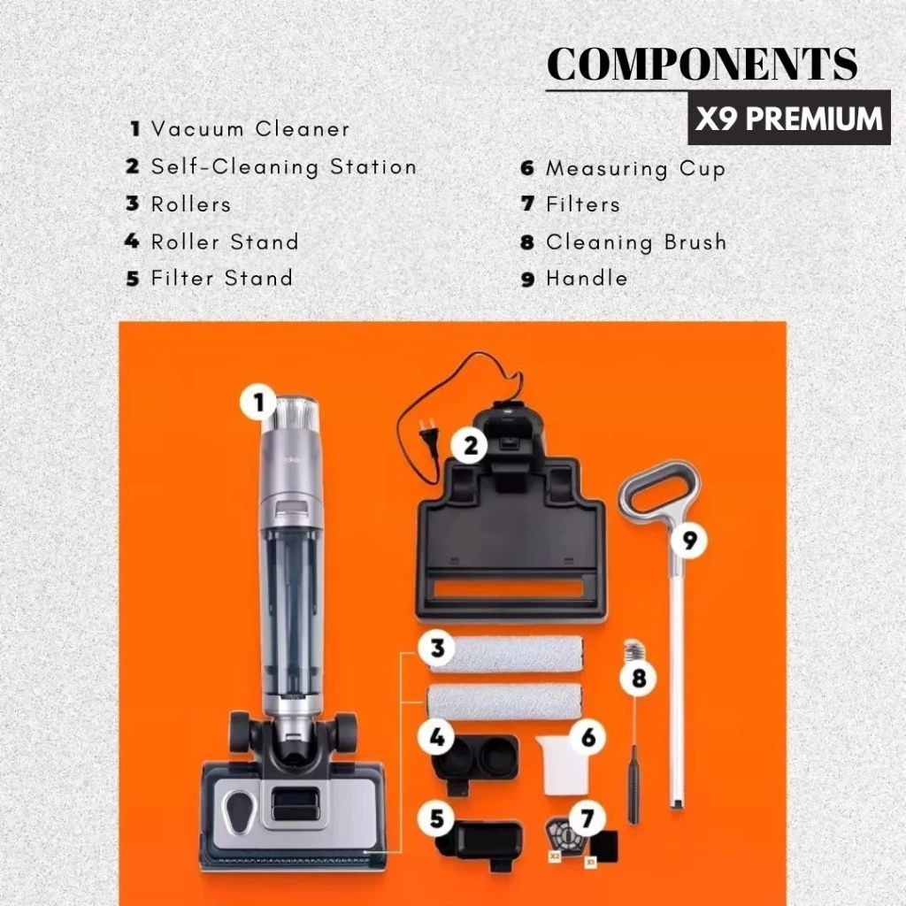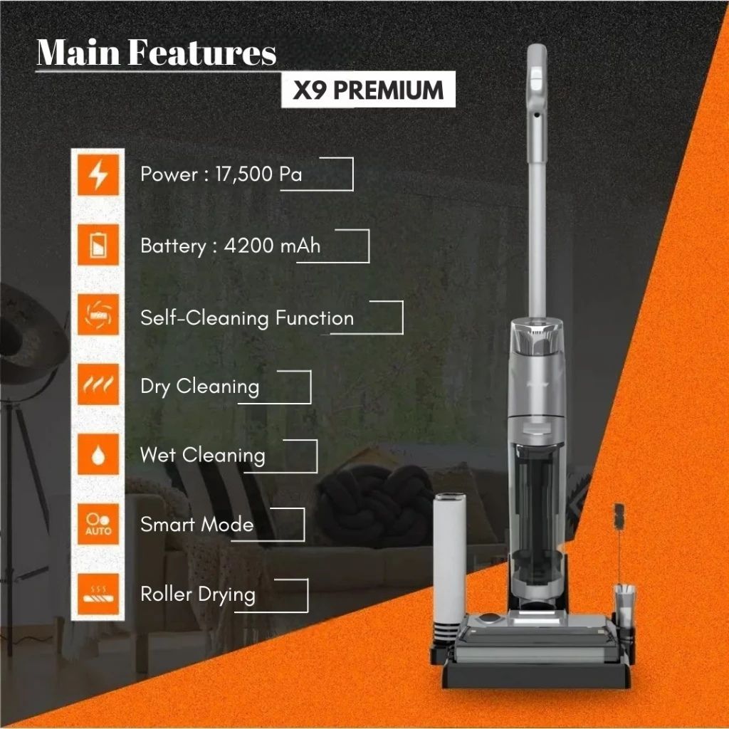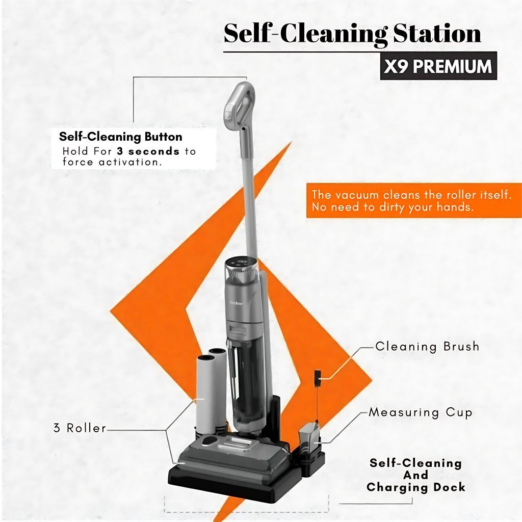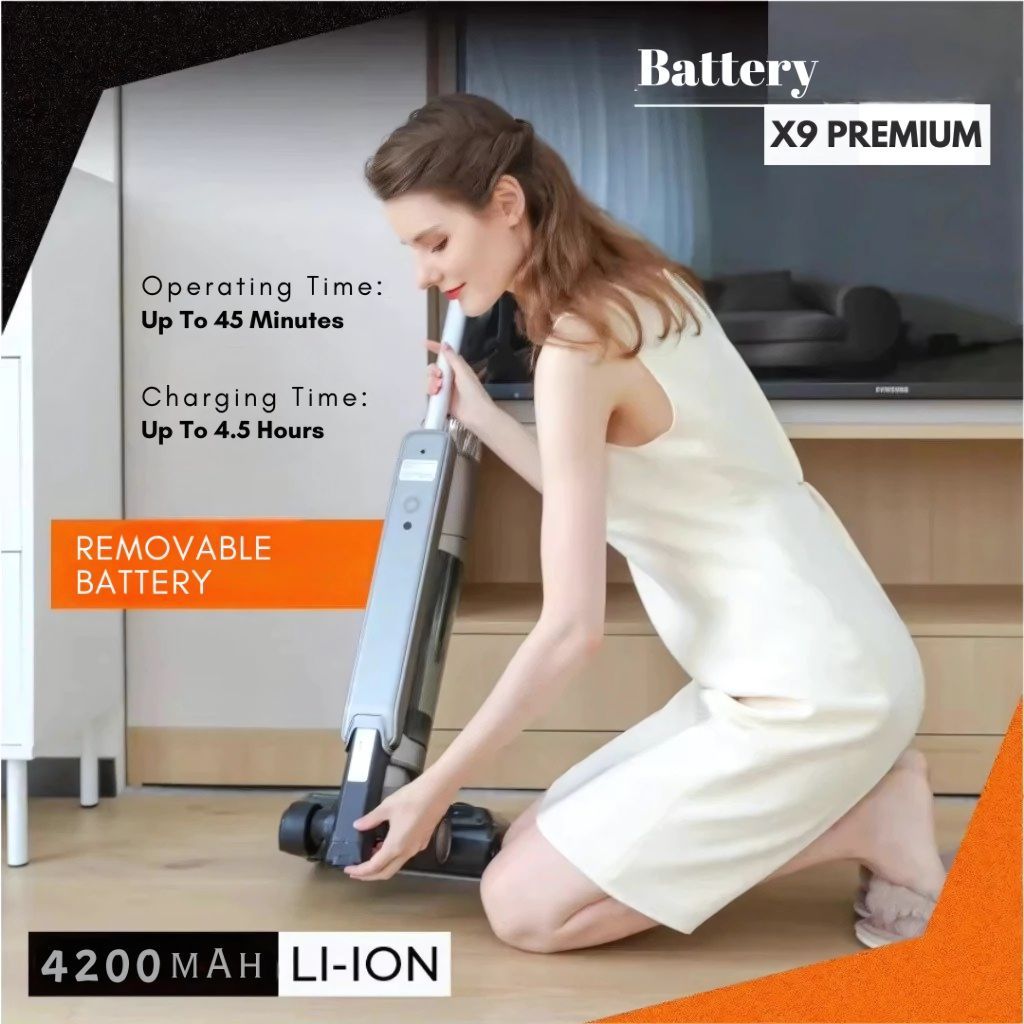 ENOLUX X9 PREMIUM Wet and Dry Cordless Vacuum Cleaner - Edge Cleaning, Auto-Cleaning, Dirt Detection