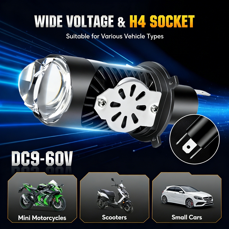 SOARFLY H4 Bi LED Headlight Projector Mini Lens For Lampu Motor Headlight Bulbs High Low Beam Plug & Play
