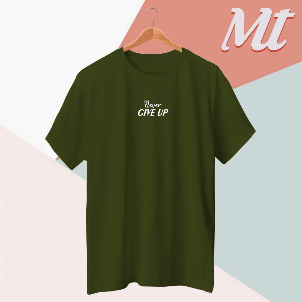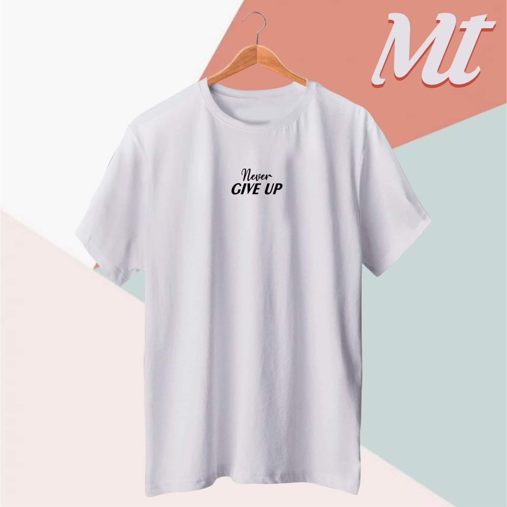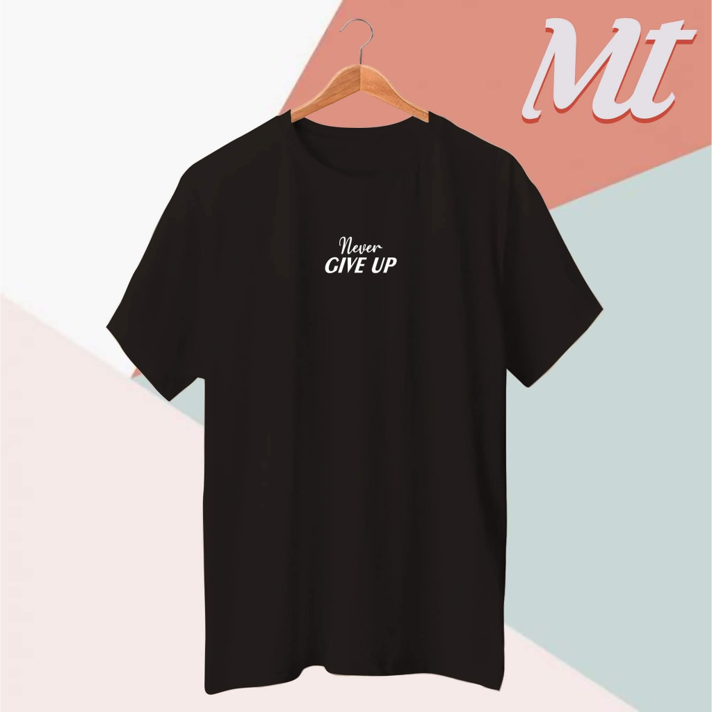 Casual Cotton Fabric Adult Size Never Give Up Statement Round Neck T-Shirt