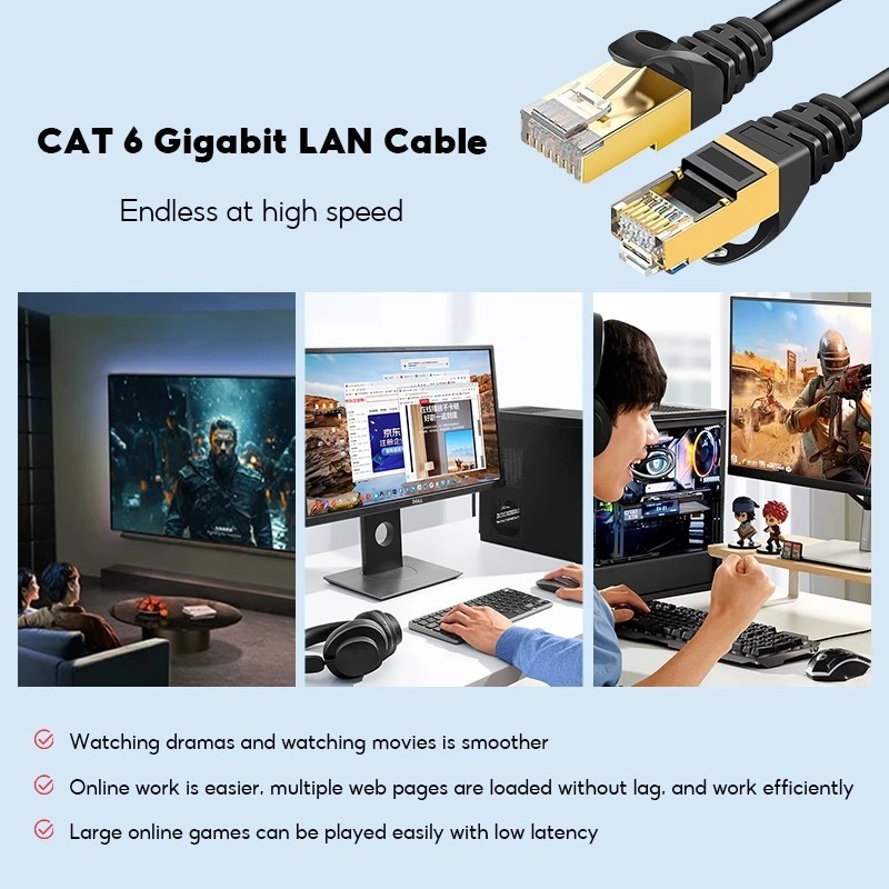 CAT6E RJ45 Flat Lan Cable Outdoor Ethernet Cable 1000Mbps Network Cable 3M 5M 10M 20M 30M 40M 50M