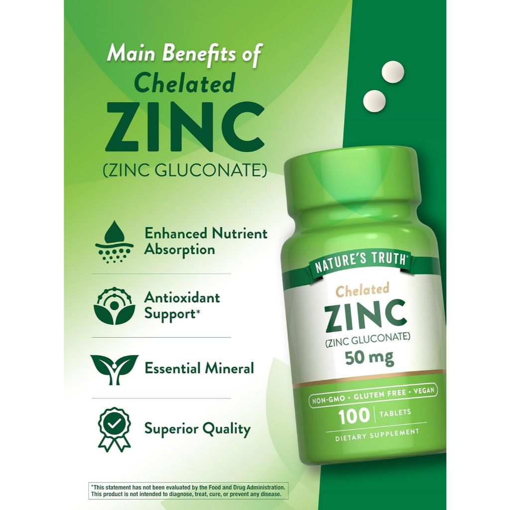 Nature'sTruthPH | Nature's Truth, Zinc, Chelated , 50 mg, 100 Tablets Supports Immune Function