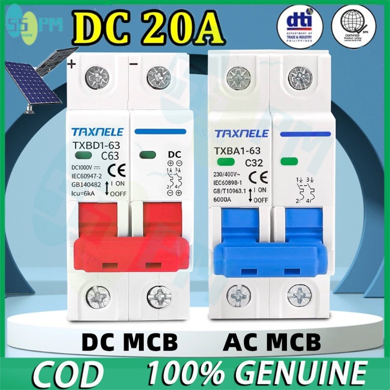 2P 20A DC MCB 1000V Solar Mini Circuit Breaker Battery Switch DC MCB for Photovoltaic PV System