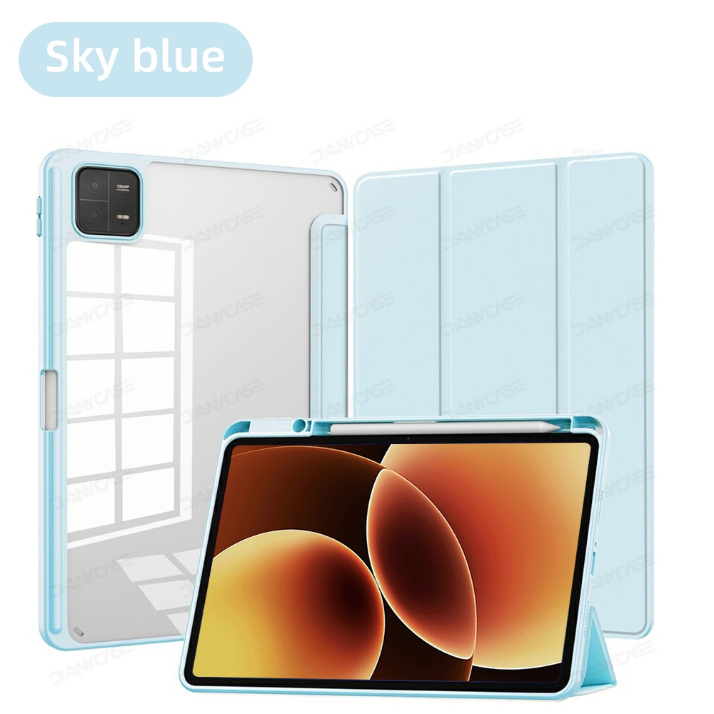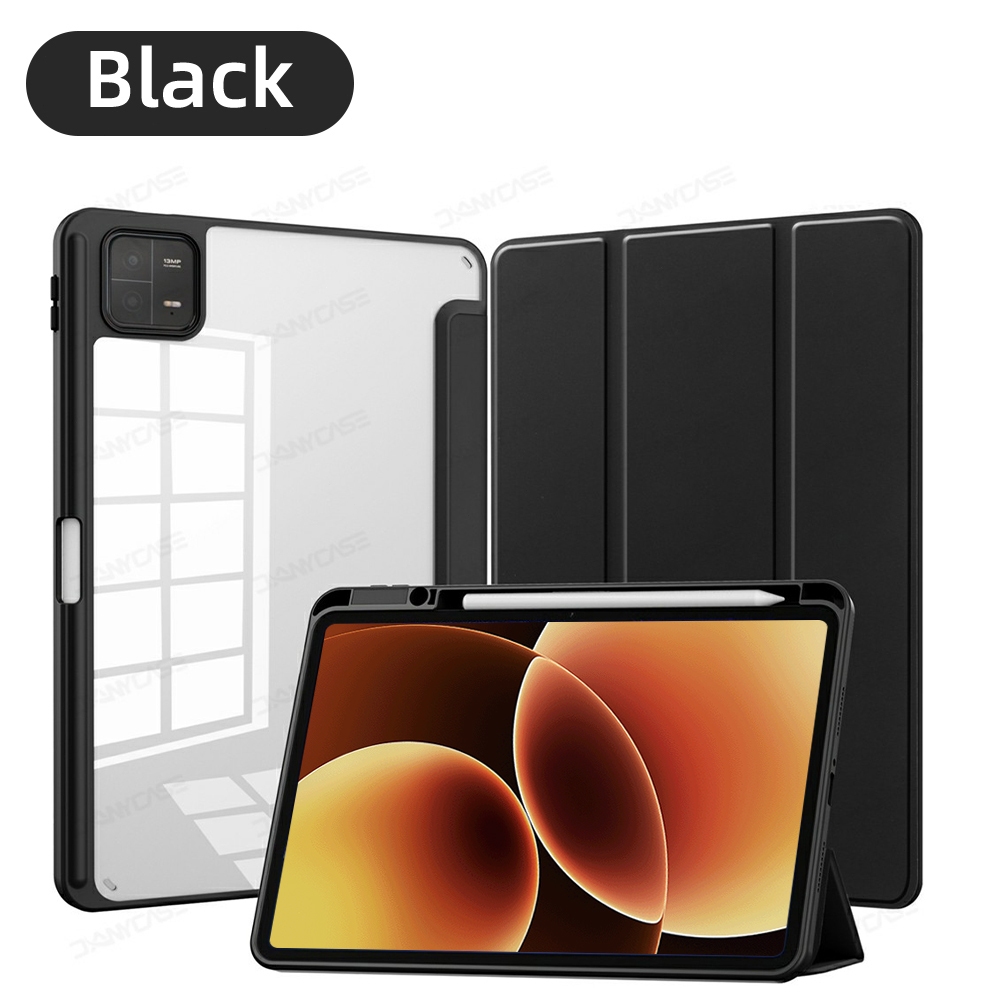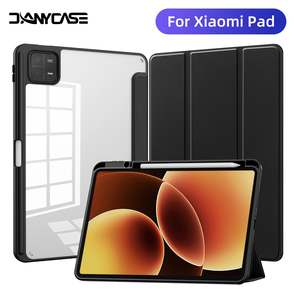 Acrylic Clear Case for Xiaomi Pad 6/6 Pro Xiaomi Pad 8/8 Pro 7/7 Pro 11.2in POCO Pad 12.1 Mi Pad 5/5 Pro 11inch 2023 Tablet Leather Cover with Pencil Holder