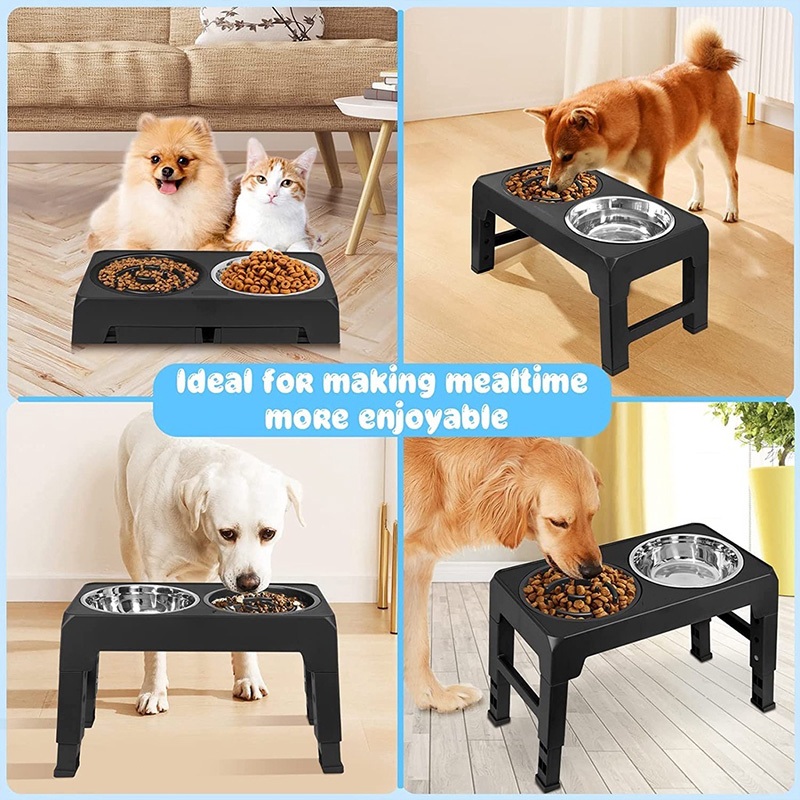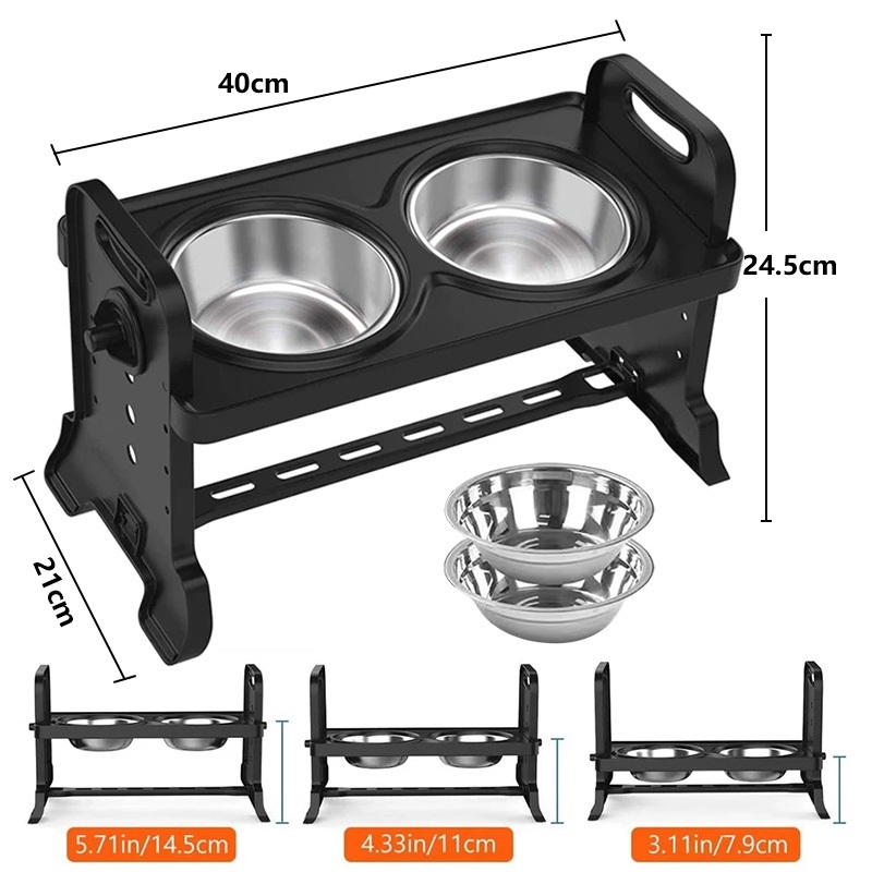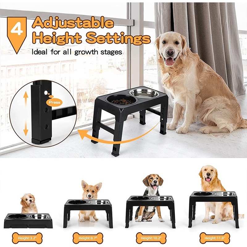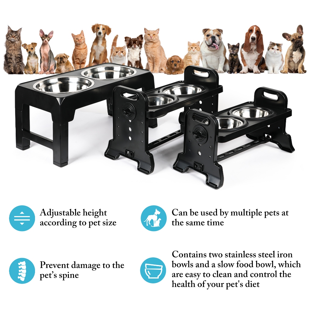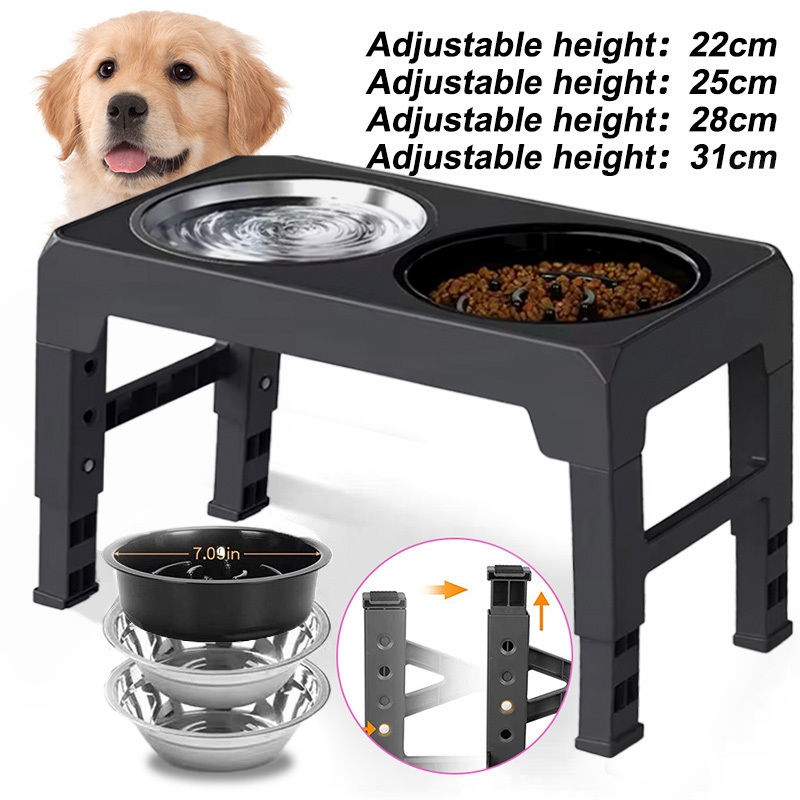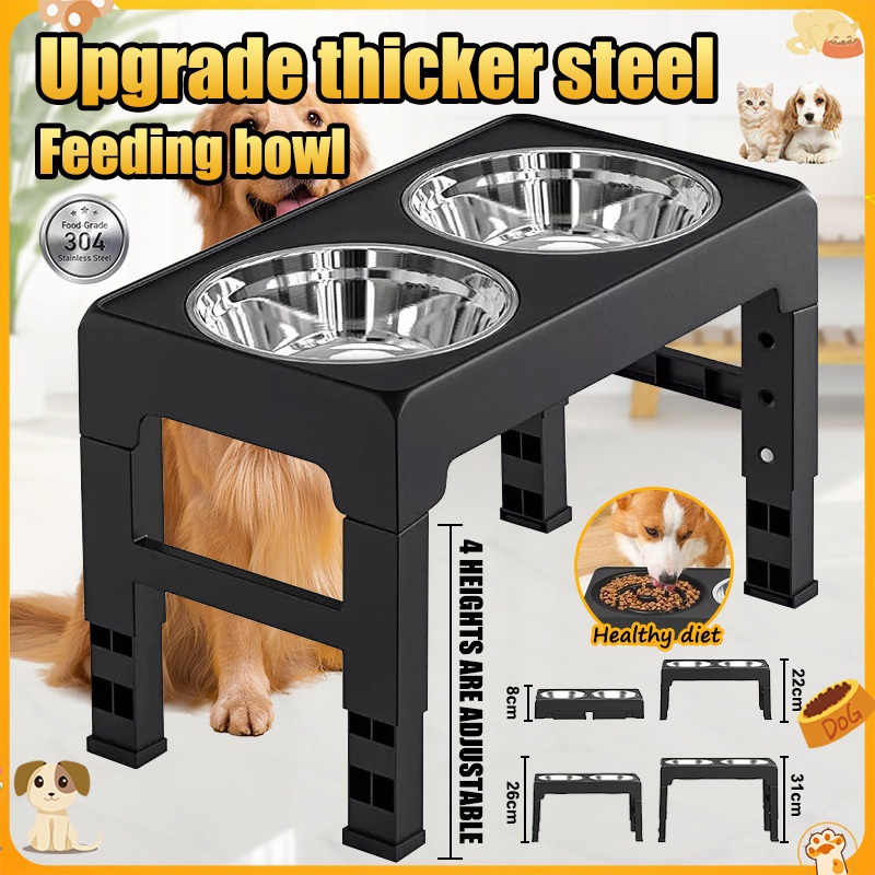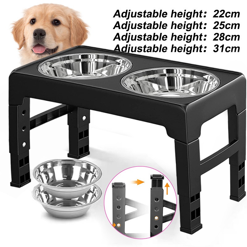 [24Hours Ship]Adjustable Pet Dog Feeder Bowl with Stand Stainless Water Food Bowl for Cat Dog Pet