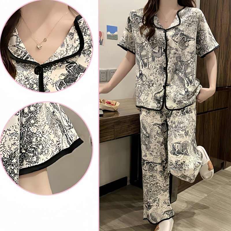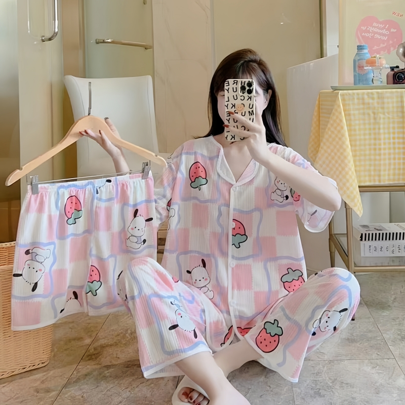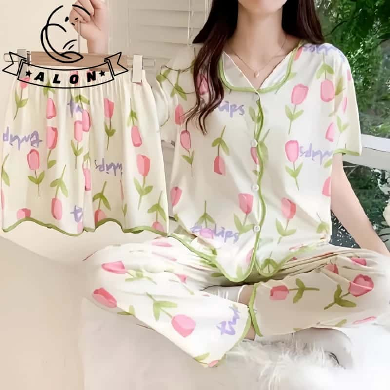 ALON Korean pajama for women plus size terno pantulog for woman 3 in 1 short sleeves sleepwear M-2XL