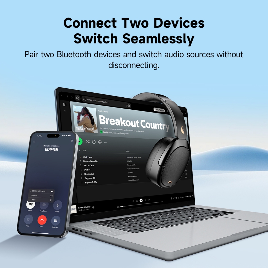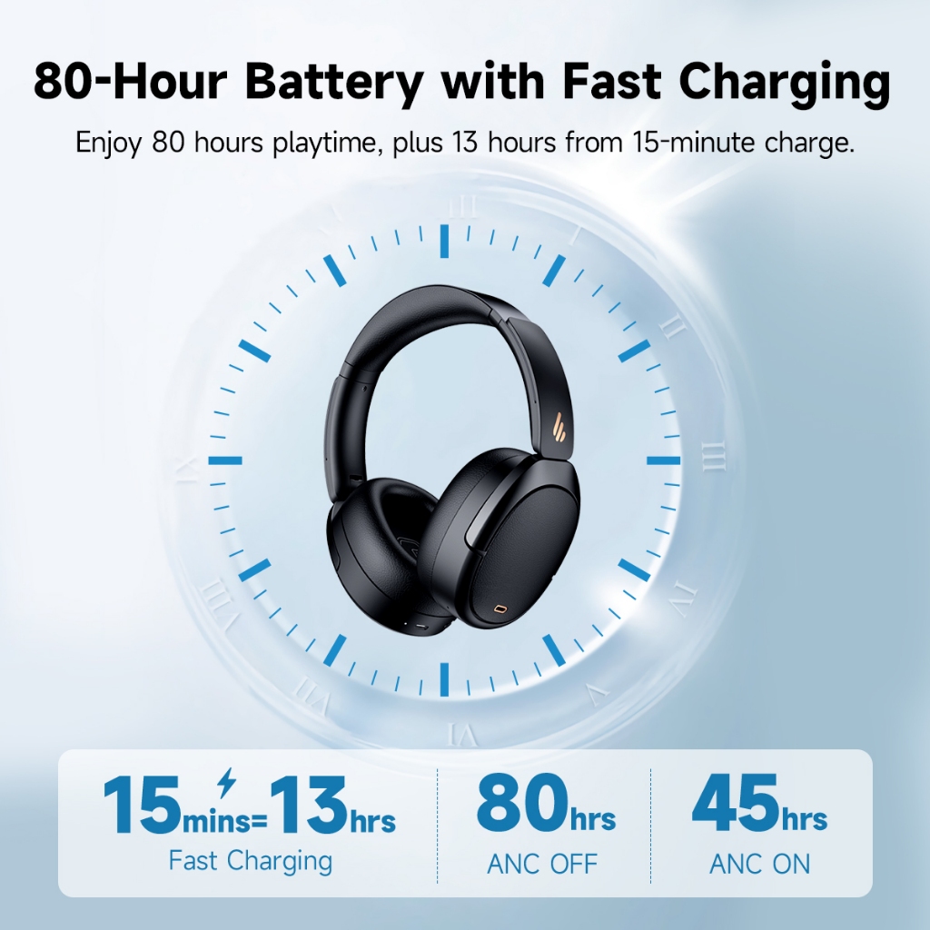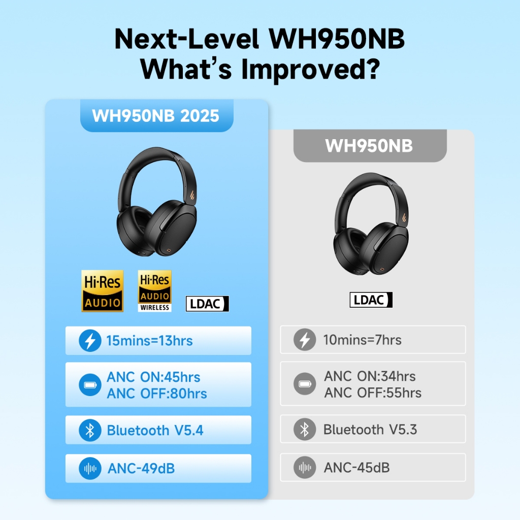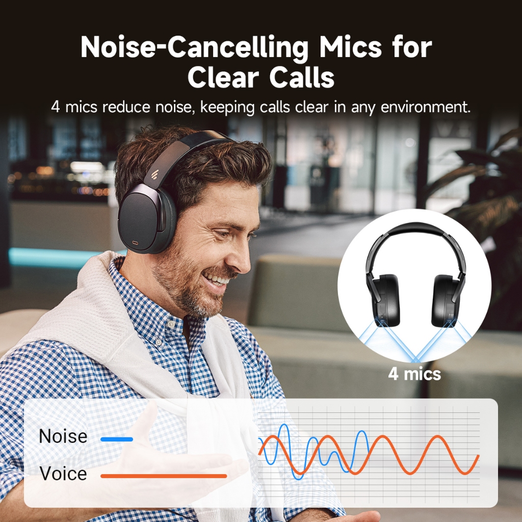 EDIFIER WH950NB Gen 2 -49dB Noise Cancelling Headphones 80 Hours Playtime 6 Mics with AI Algorithm Wireless Over-ear Headsets Hi-Res Audio Premium Sound 40mm Dynamic Driver 3.5MM AUX Fast Charging Dual-Device Connection Hands-free Clear Calls