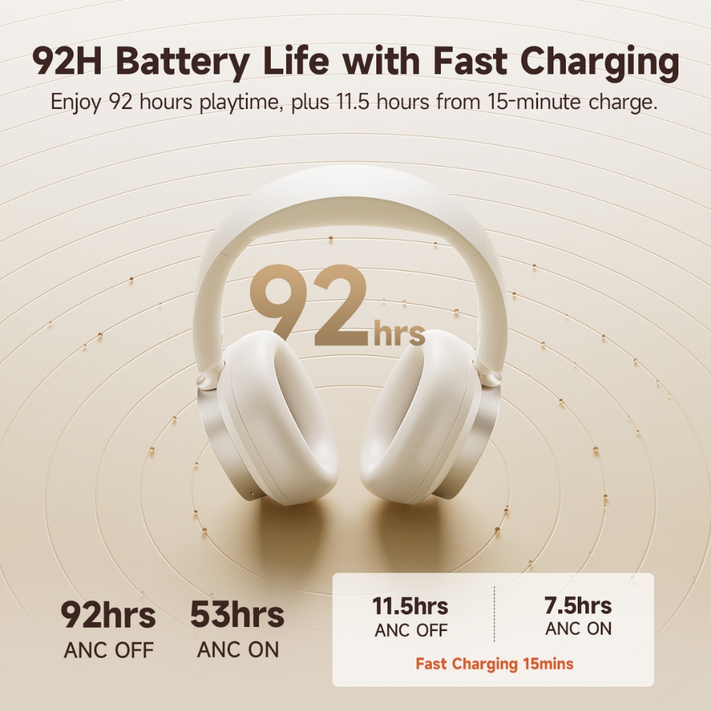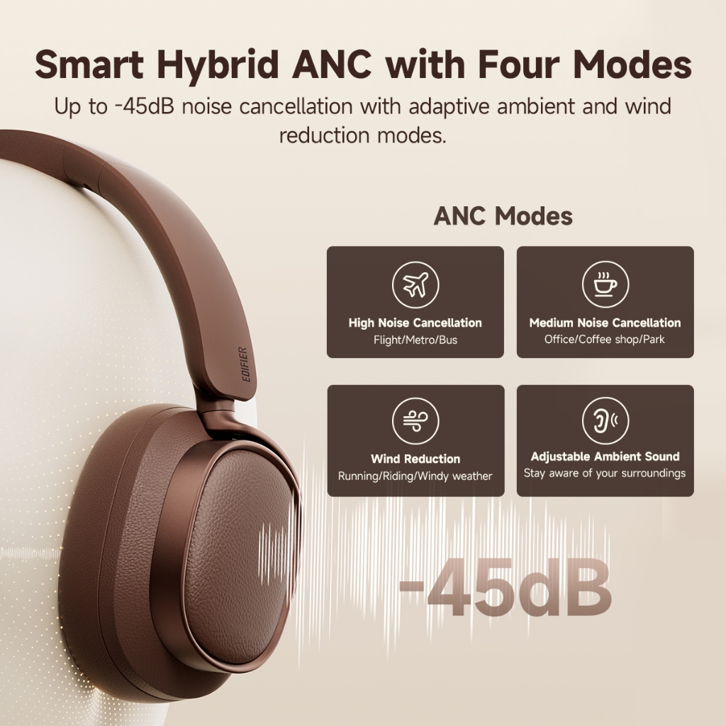 EDIFIER ES850NB -45dB Active Noise Cancelling Wireless Over Ear Headphones 92 Hours Playtime Touch-to-chat Function HiRes Audio LDAC/AAC/SBC AI Clear Calls Foldable Design Fast Charging Crystal Clear Calls Skin-friendly Bluetooth 5.4