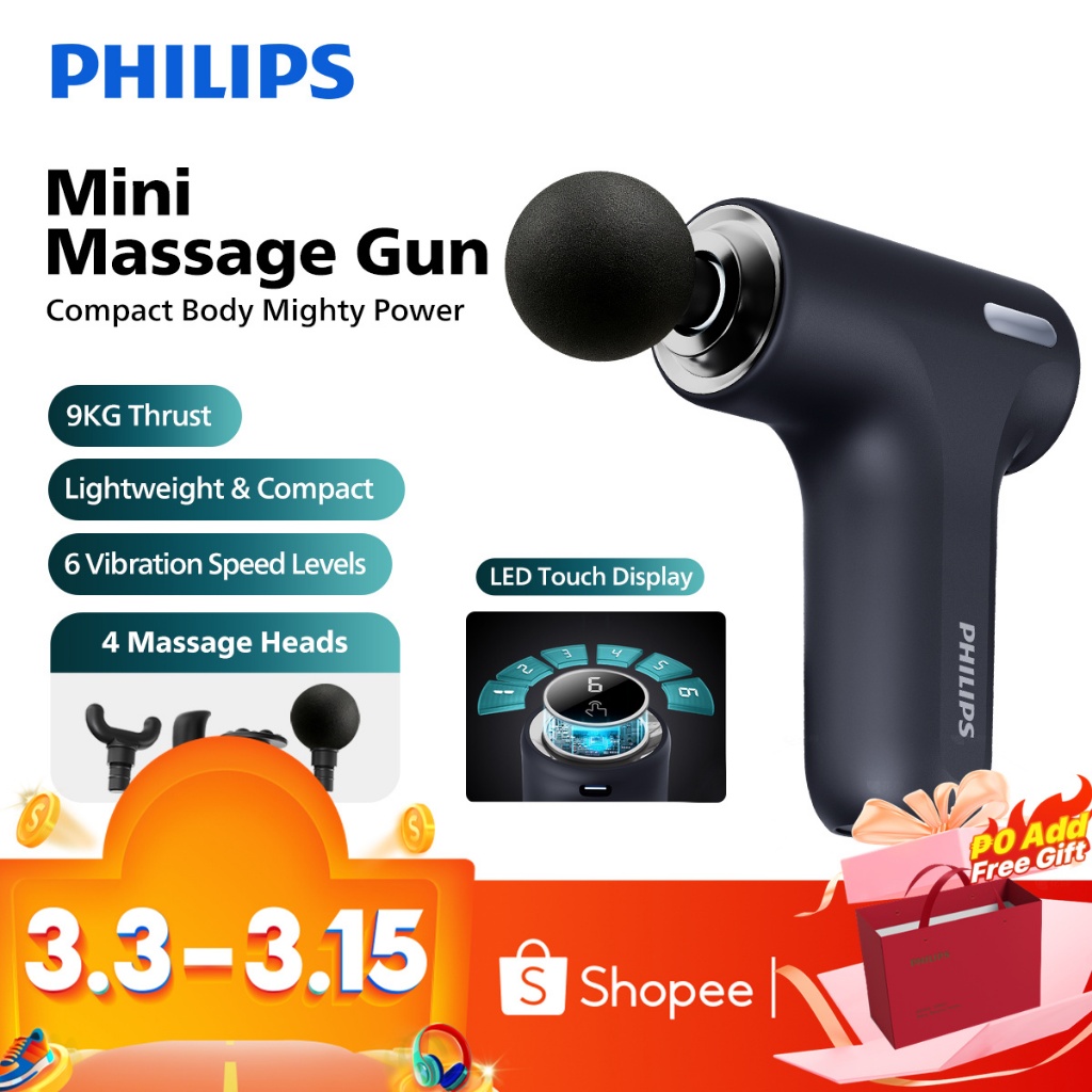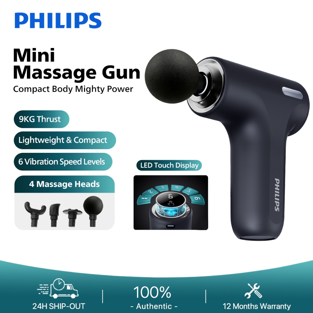 Philips Mini Massage Gun Smart Touch Screen Massage Gun 6 Levels Of Strength 4 Massage Heads