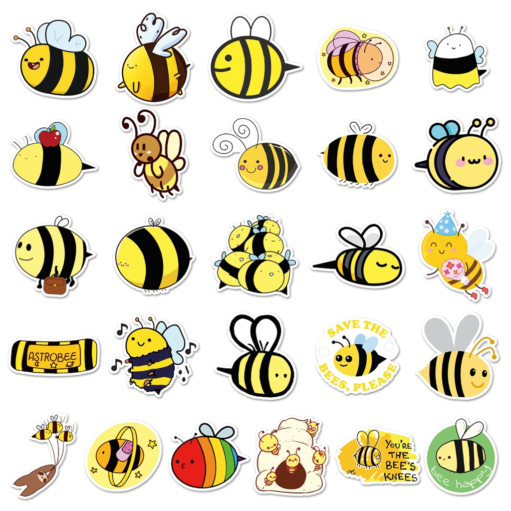 50 Piece Funny Bees Stickers Waterproof DIY For Phones Laptop Car Sticker Creative Home Decal