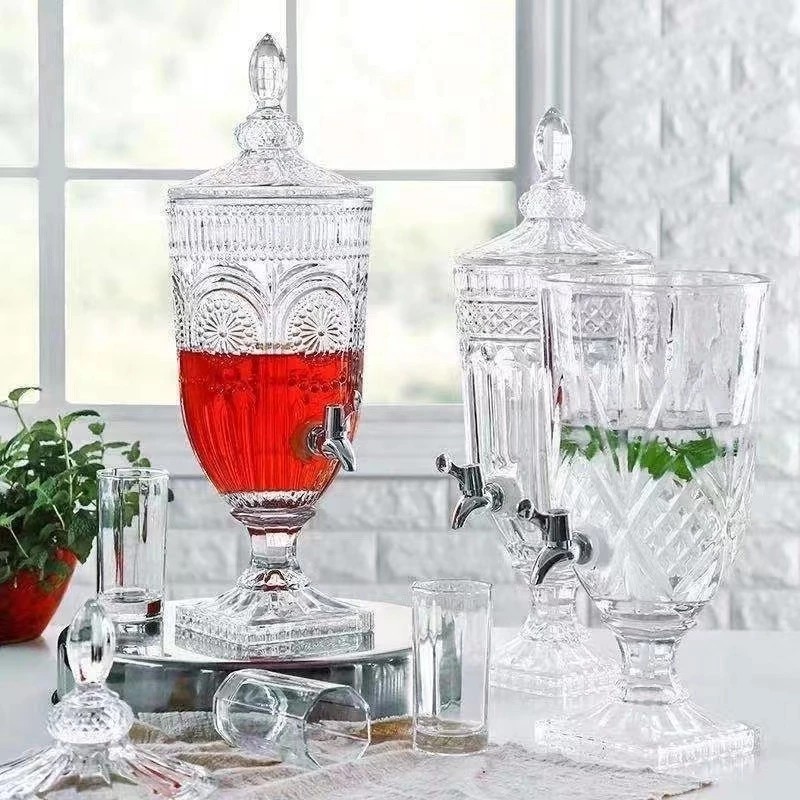 Elegant 2L3L5L Glass juice wine dispenser with tap | glass beverage dispenser jar |perfume dispenser