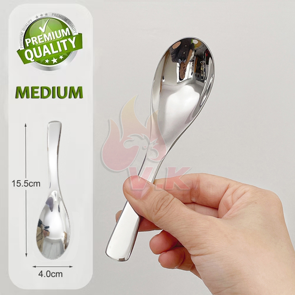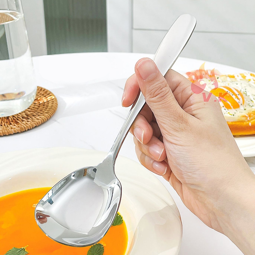 VK 304 Stainless Steel Spoon Flat-Bottomed Spoon Europe Style Eating Spoon Square Head Serving Spoon