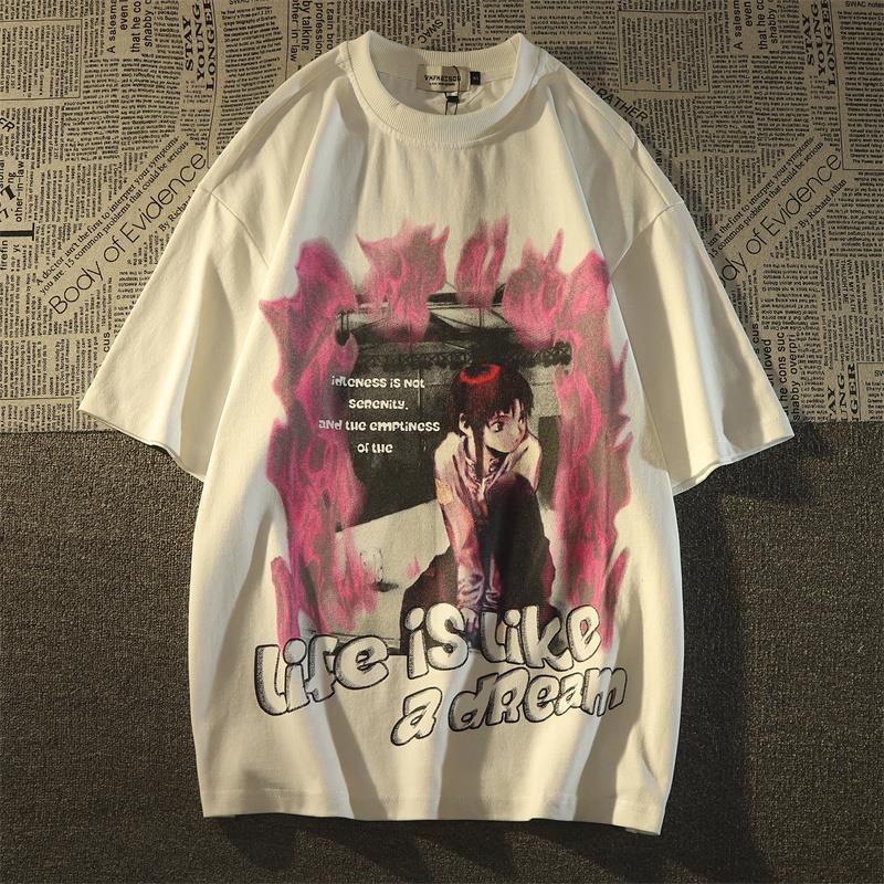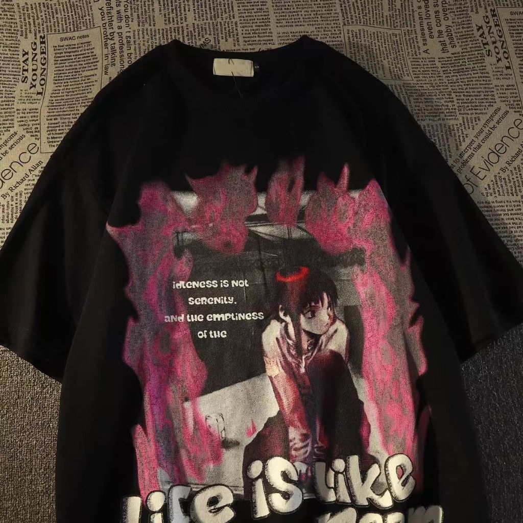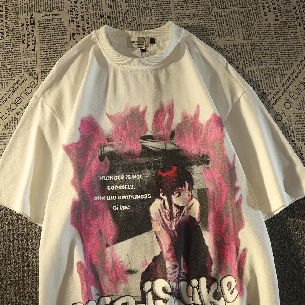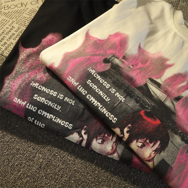Dark two-dimensional short-sleeved T-shirt pambabae loose ins sweet cool wind oversize half-sleeved top