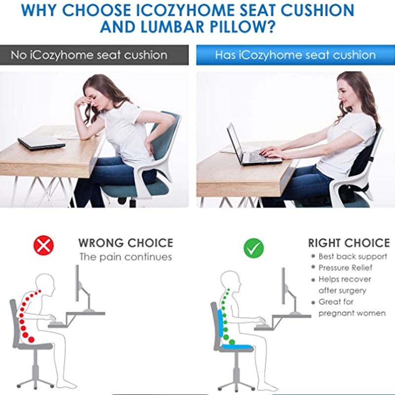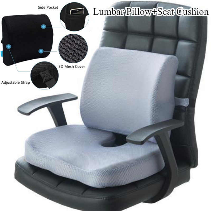 2Pcs Memory Foam Seat Cushion Office Chair Pad Lumbar Support Pillow Comfortable Relieve Back Pain Home Office