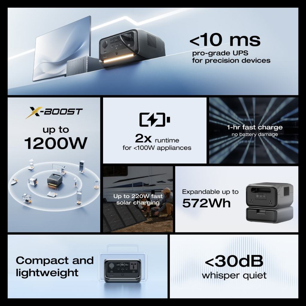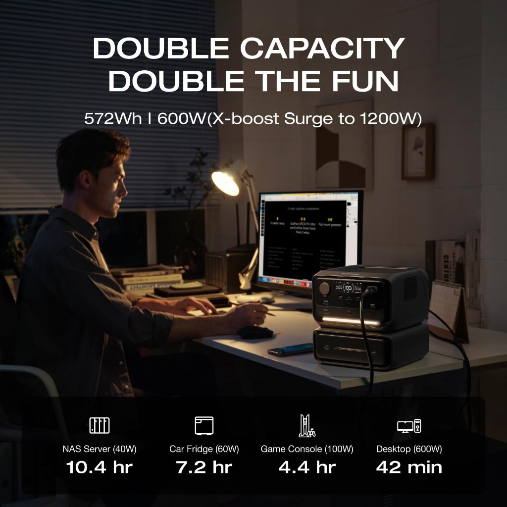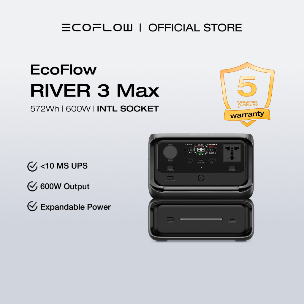 EcoFlow Portable Power Station River 3 Max Expand Capacity from 286Wh to 572Wh, 3 Up to 1200W AC Outlets, <10 MS UPS, <30 dB Quiet, LiFePO4 Battery