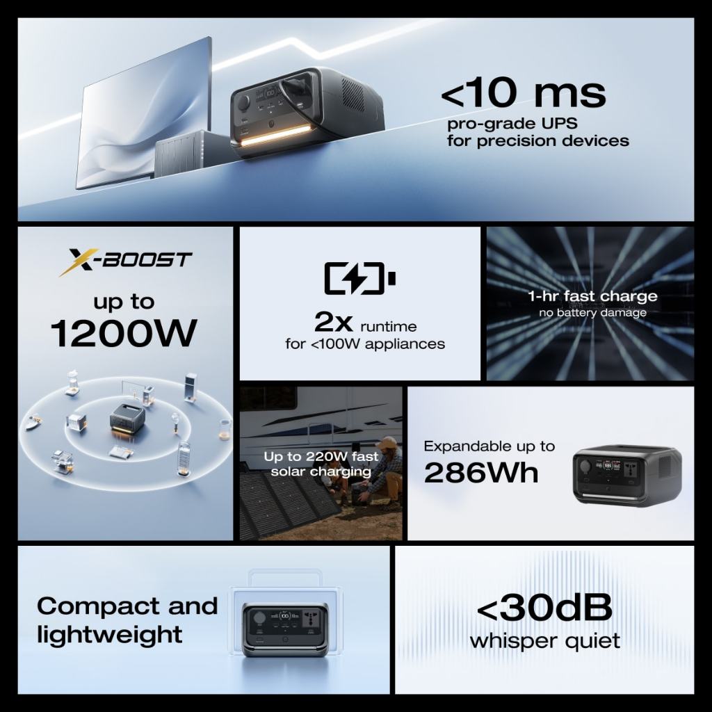 EcoFlow Portable Power Station RIVER 3 Plus, 286Wh LiFePO4 Battery, 3 Up to 1200W AC Outlets, <10 MS UPS, Expandable to 858Wh, <30 dB Quiet, 1Hr Fast Charging Solar Generator for Outdoor Camping/RV