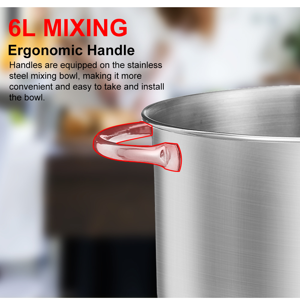 BioloMix 6L Stand Mixer Stainless Steel Bowl 6-speed Kitchen Food Blender Cream Egg Whisk Cake Dough Kneader Bread Maker
