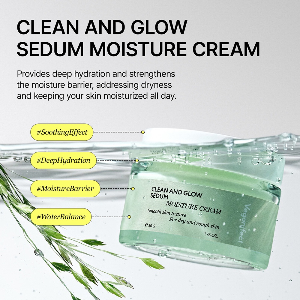 [Veganifect] Sedum Moisture Cream 50g / LHA / Beta-Glucan / 70+% Sedum Extract / 100% Vegan Hydration Moisturizer / Intense Hydration Cream / Free Gifts / Facial Moisture Cream