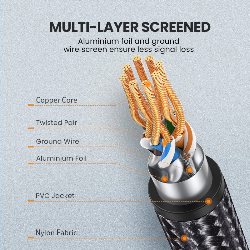 UGREEN Ethernet Cable CAT8 40Gbps 2000MHz CAT 8 Networking Nylon Braided Internet Lan Cord for Laptops PS 4 RJ45 Cable