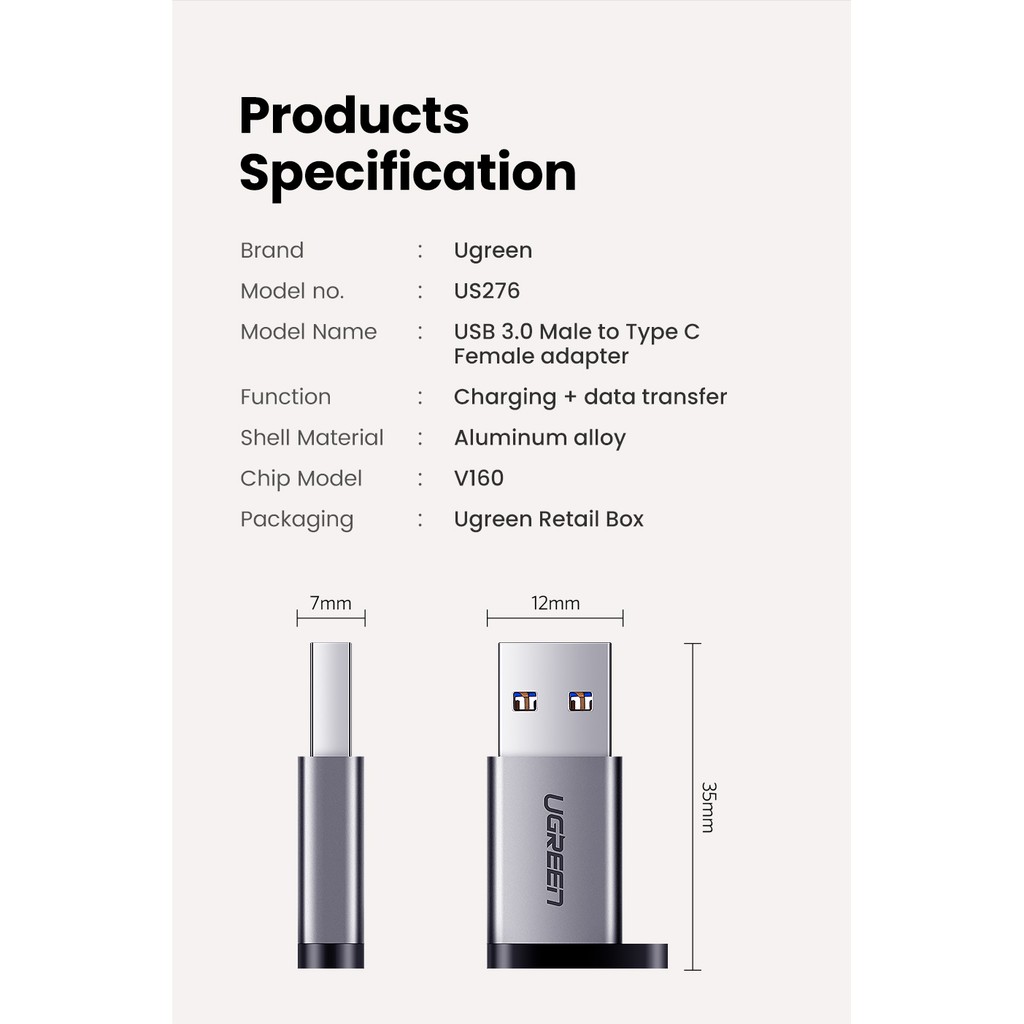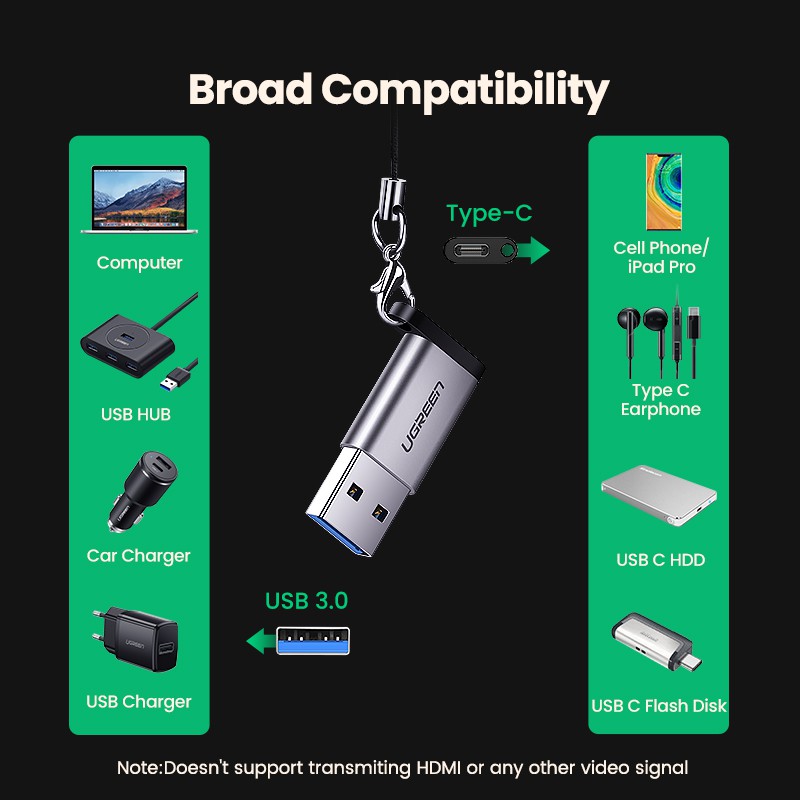 UGREEN 35MM USB C Adapter USB A 3.0 Male to USB 3.1 Type C Female Connector Type-c Adapter TypeC USB-C USB C