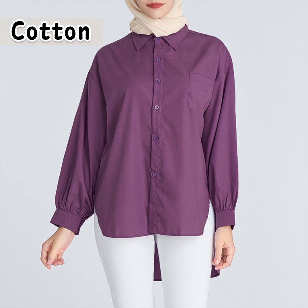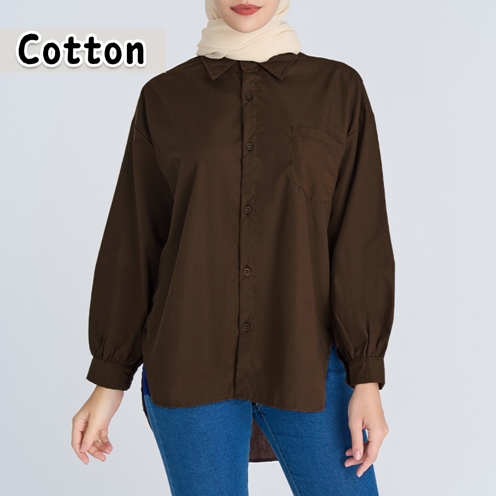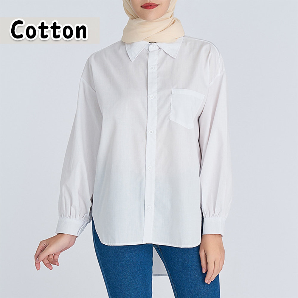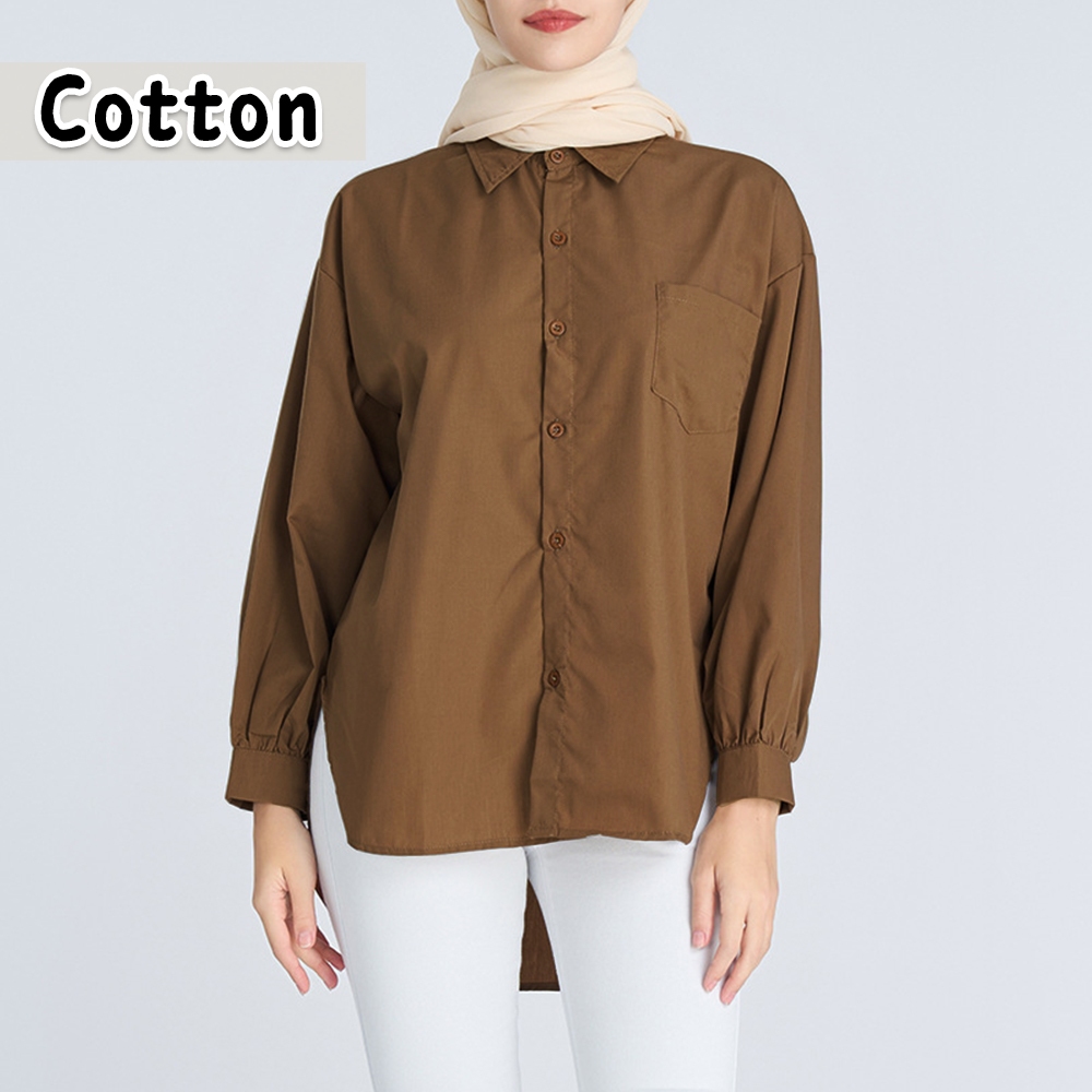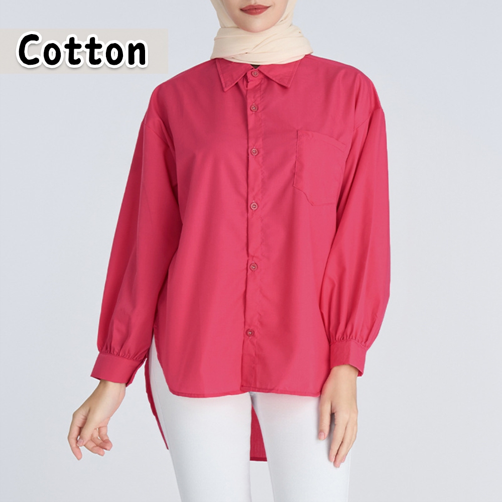 [Lamoda]BALQIS Lapel Pocket Shirt Versatile Loose Casual Long Sleeve Top kemeja Perempuan Baju Wanita Lengan Panjang