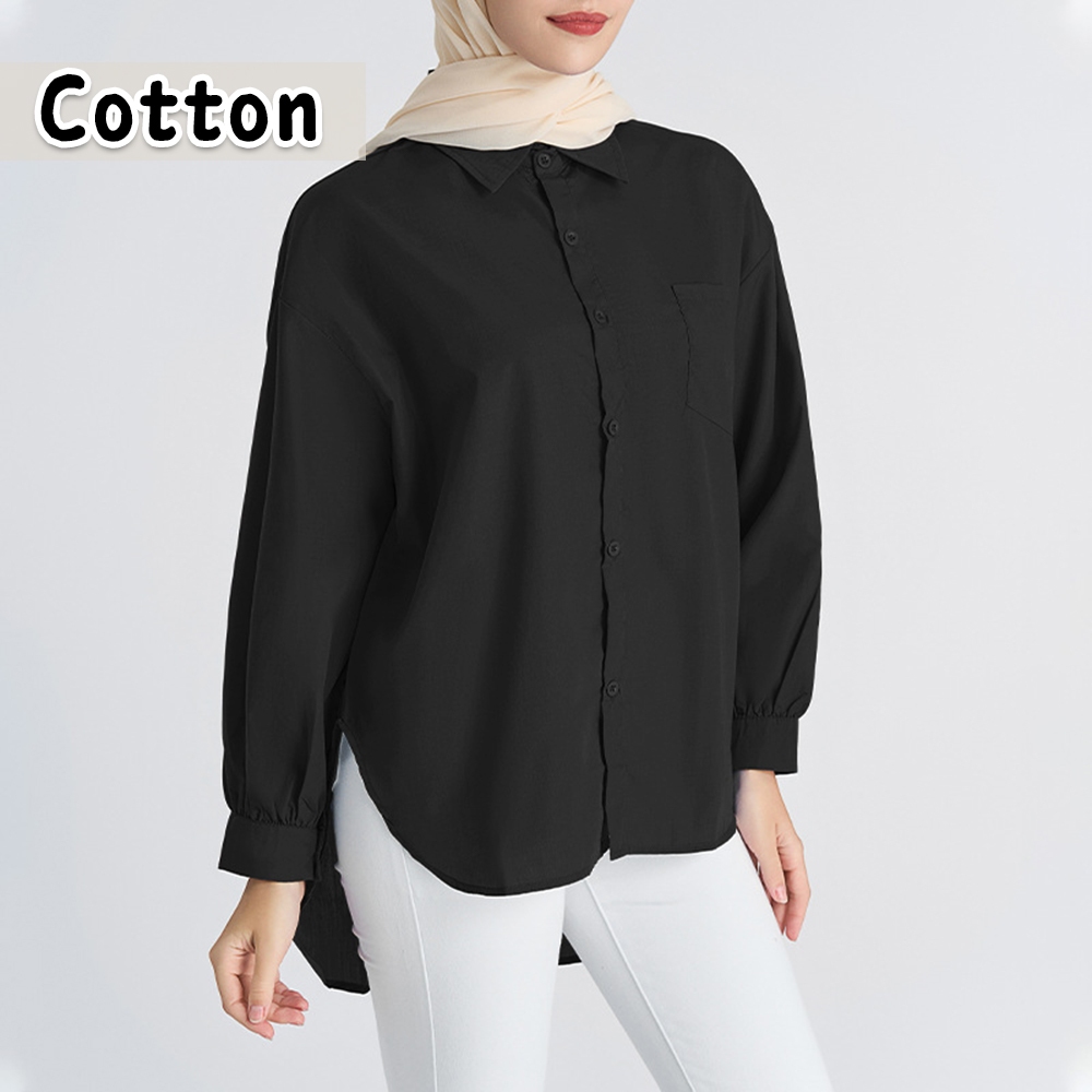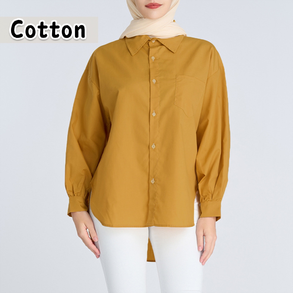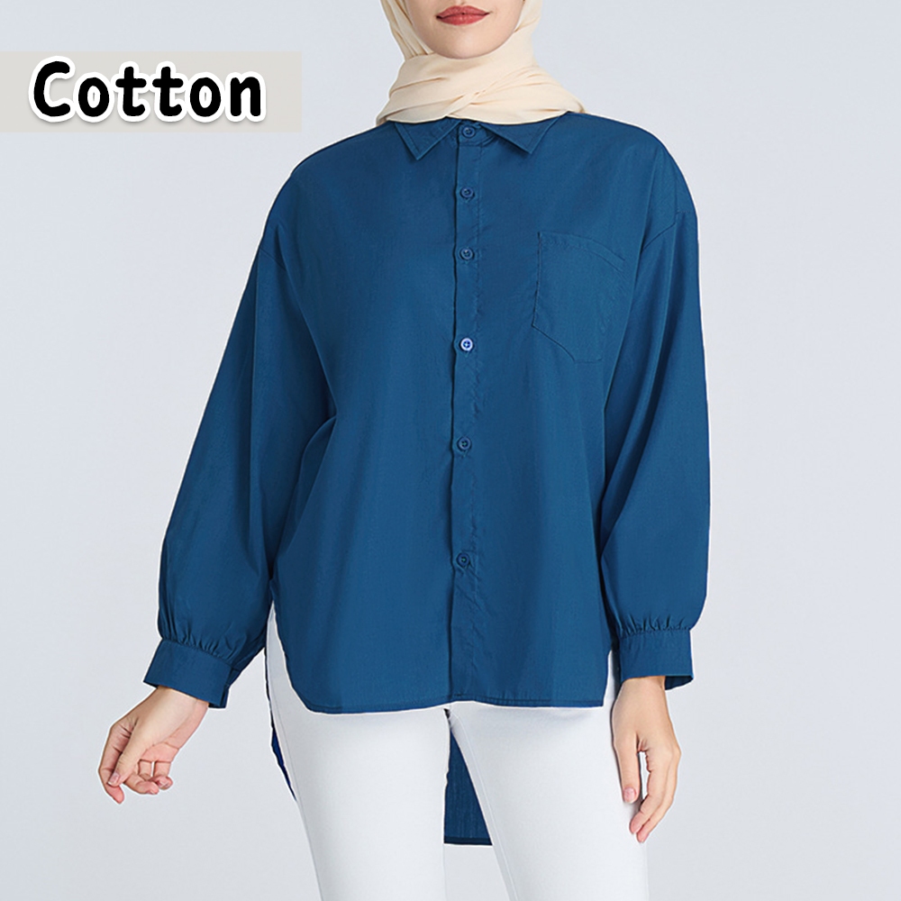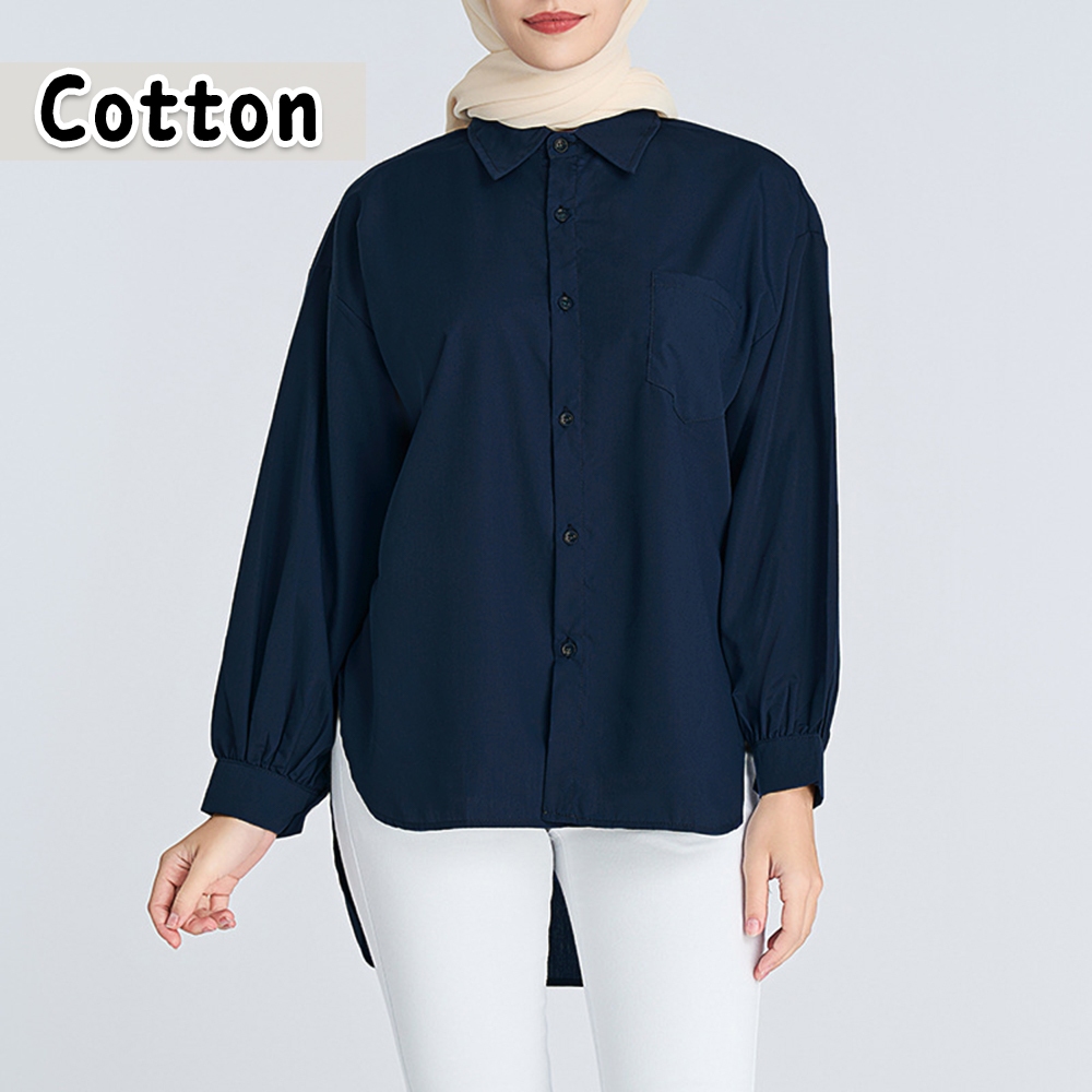 [Lamoda]BALQIS Lapel Pocket Shirt Versatile Loose Casual Long Sleeve Top kemeja Perempuan Baju Wanita Lengan Panjang